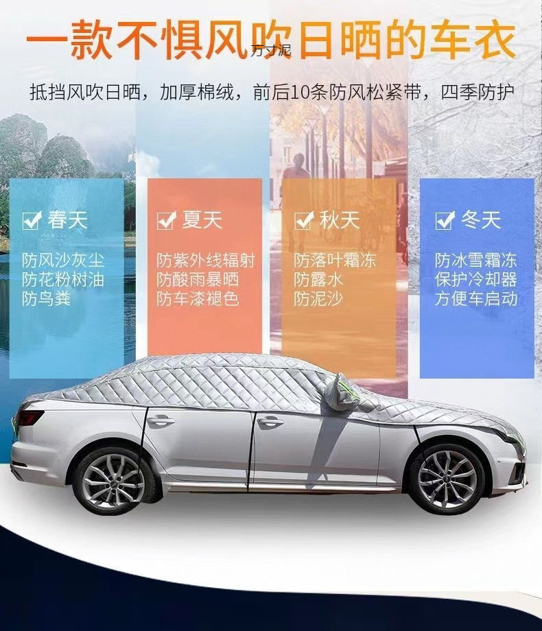 铝膜夹棉复合汽车半罩车衣车罩防晒隔热前挡风玻璃车窗防霜雪罩子
