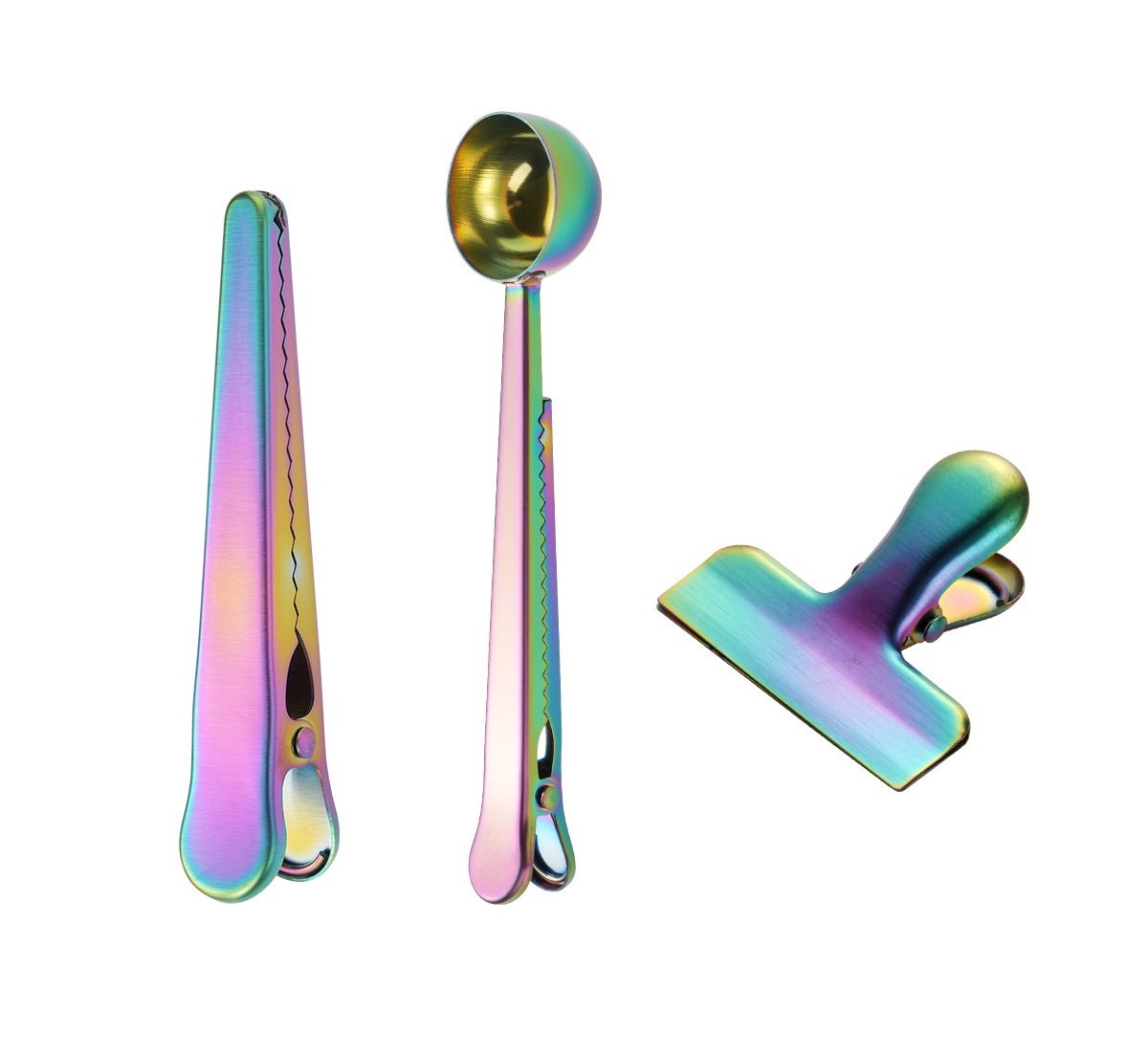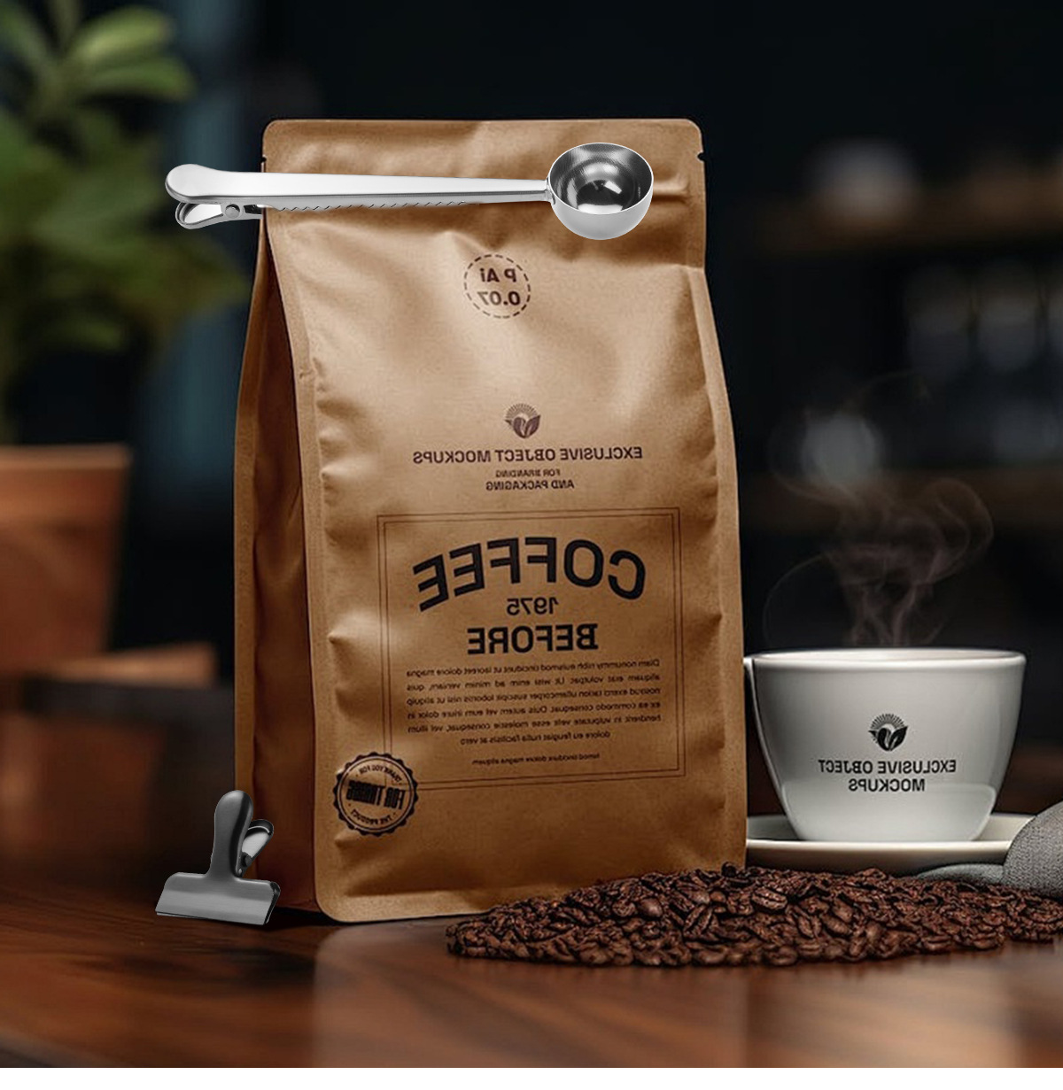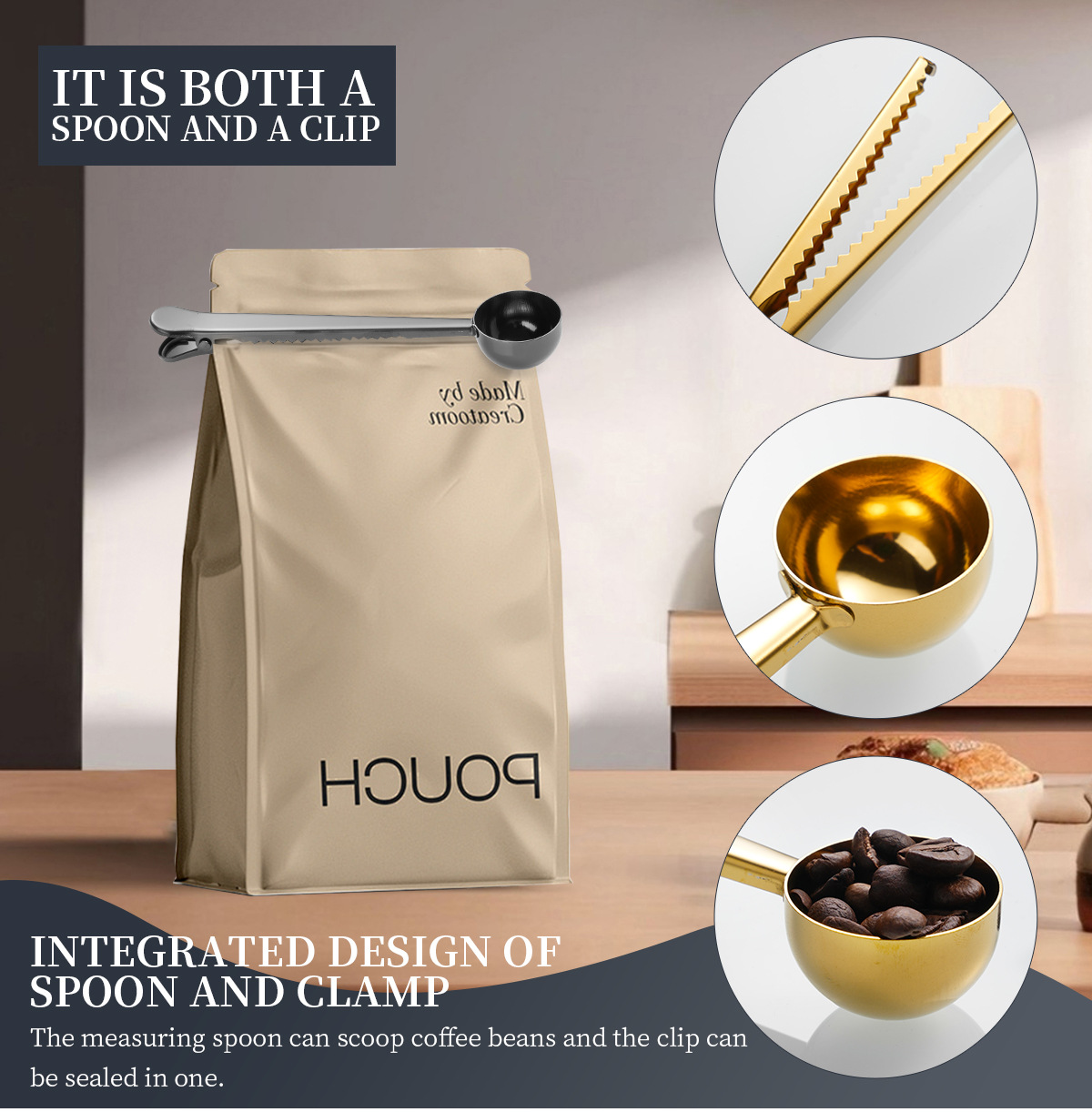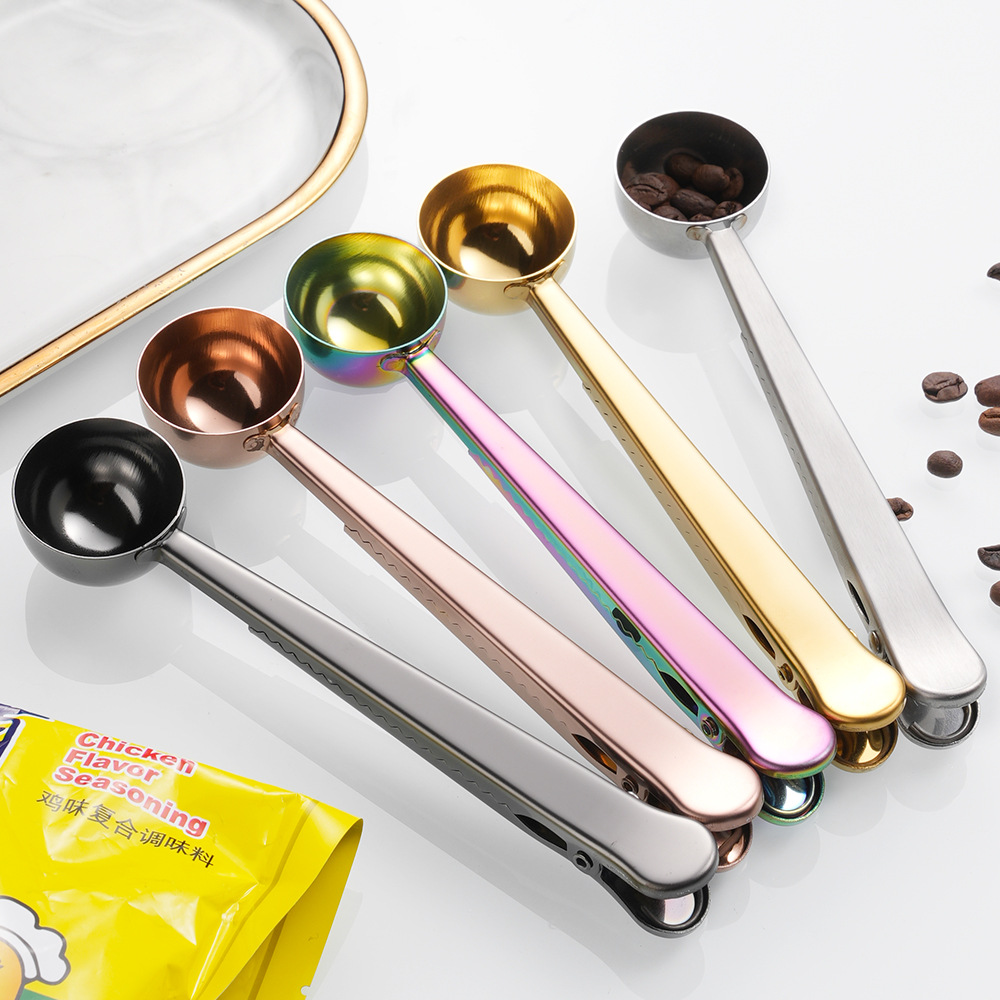 ステンレス製の2-in-1コーヒースプーン(密封付き)多機能粉ミルク計量スプーンキッチン食品密封クリップ