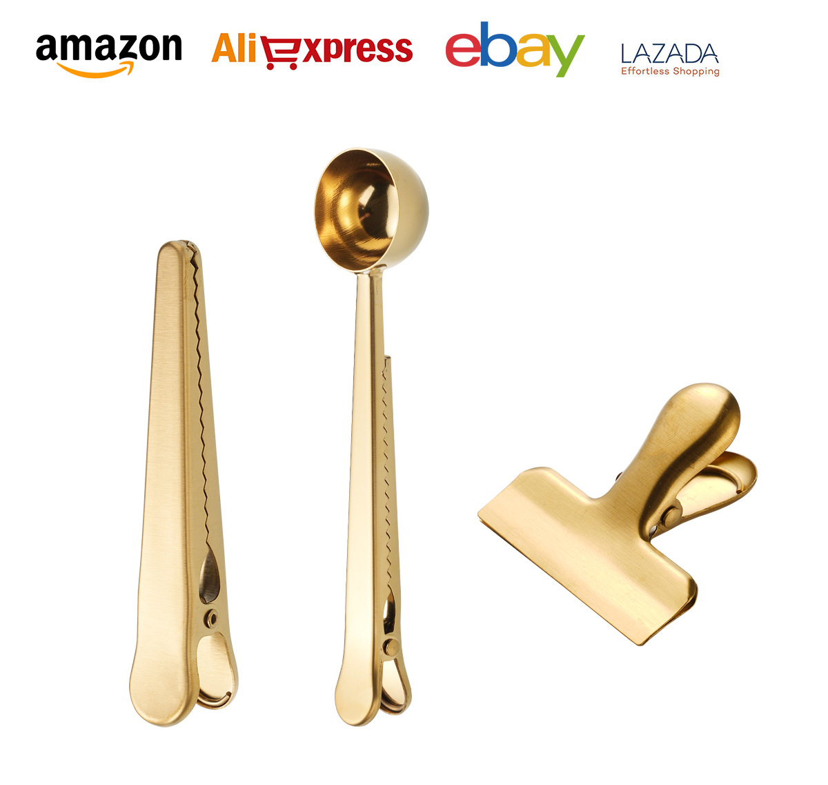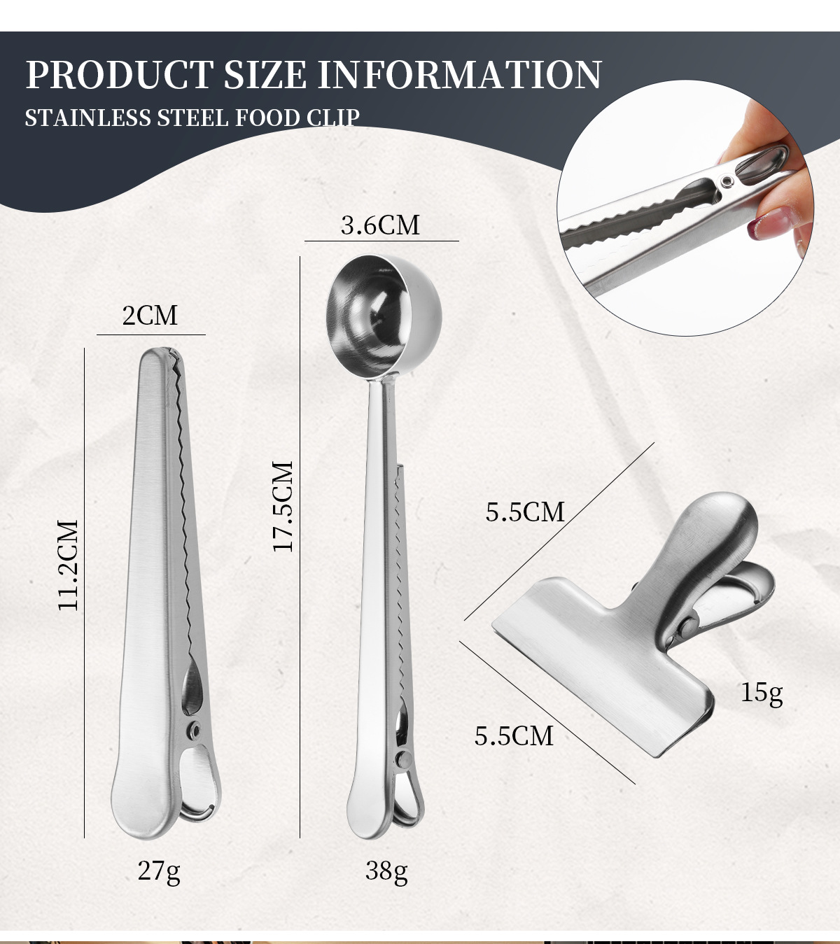 国境を越えたステンレス製家庭用子供用ベビー用密封クリップセットT字型密封防湿粉ミルク計量スプーンセット