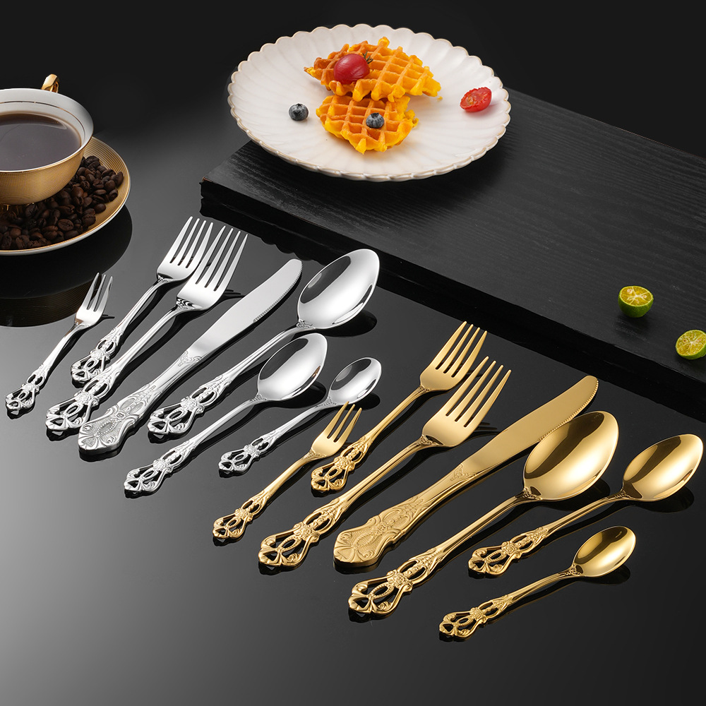皇庭ステンレスナイフフォークスプーンレリーフレトロ西洋食器7点セットクロスボーダーヨーロッパ式ステーキナイフフォークセット