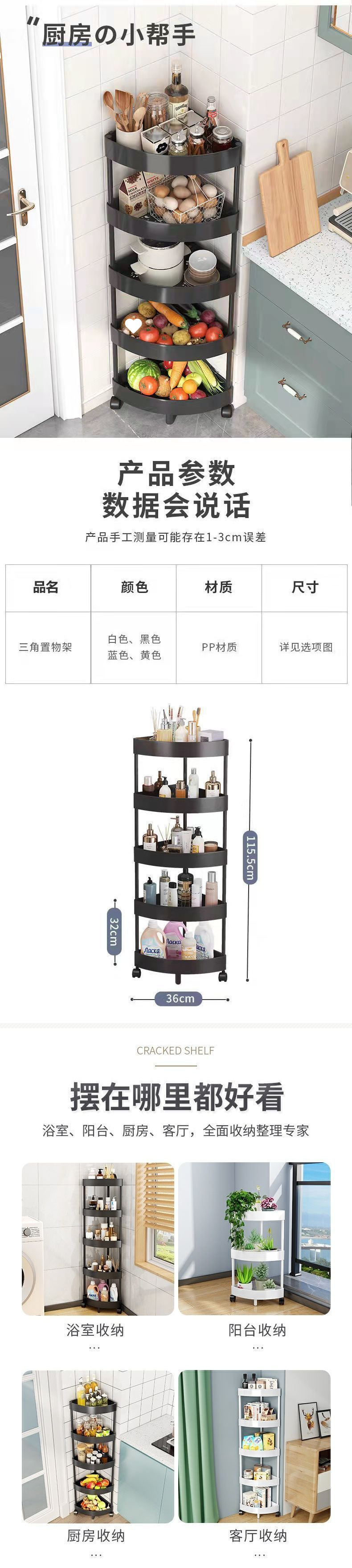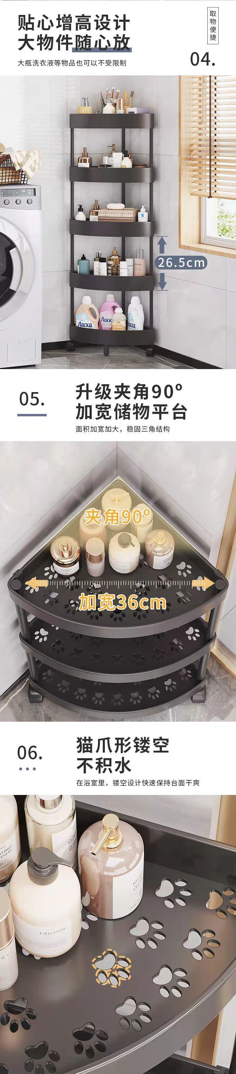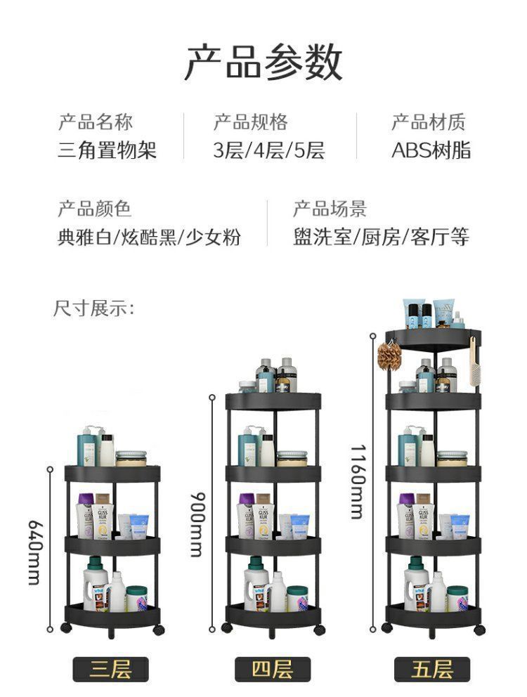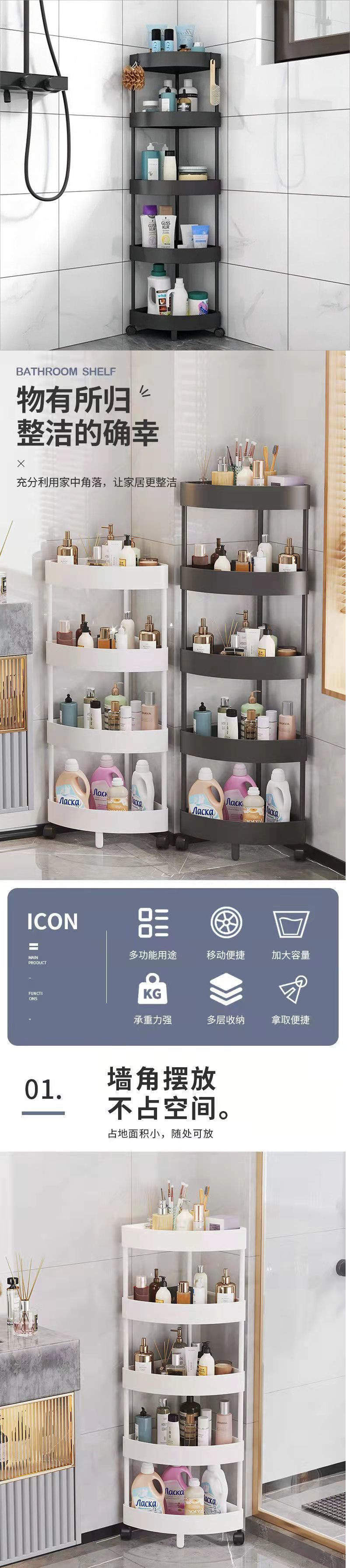 三角置物架落地厕所洗手间浴室简约客厅夹缝多层收纳可移动置物架