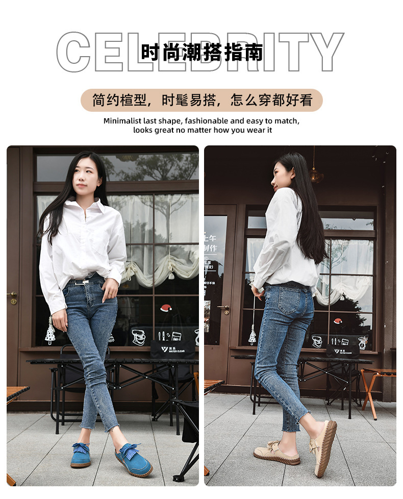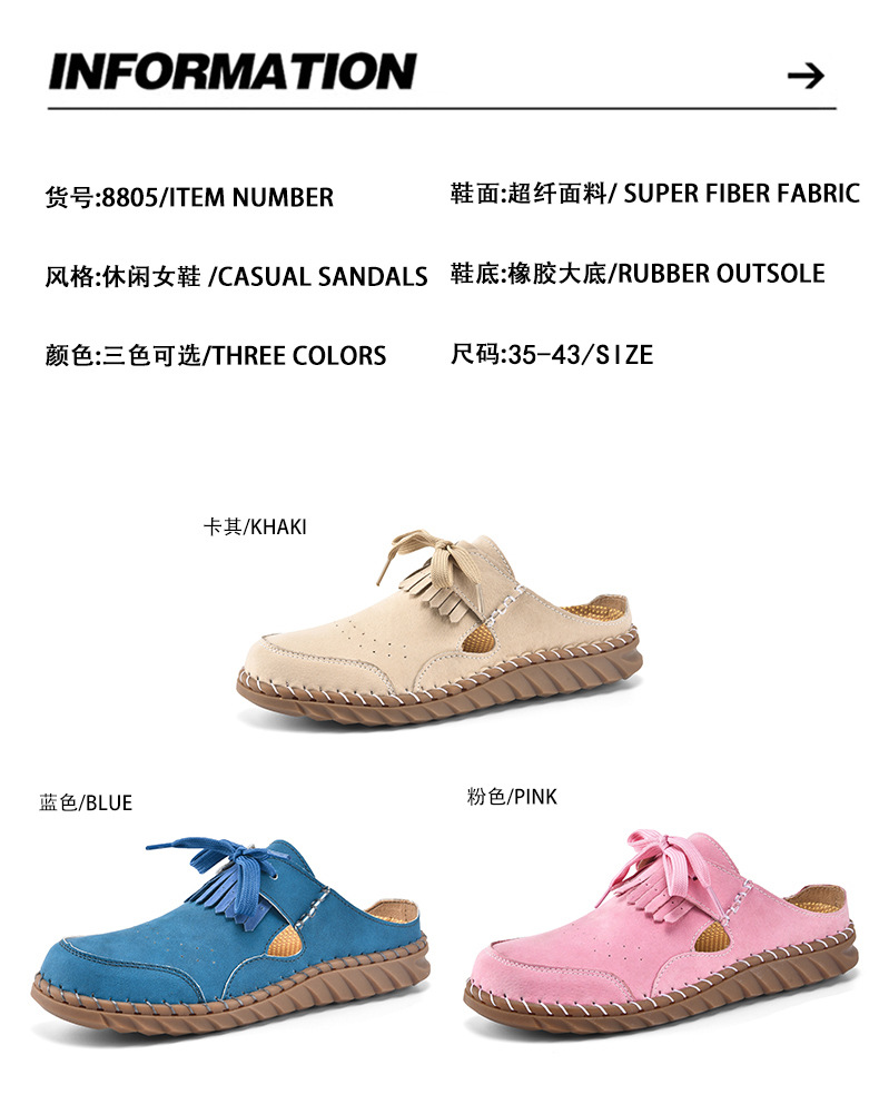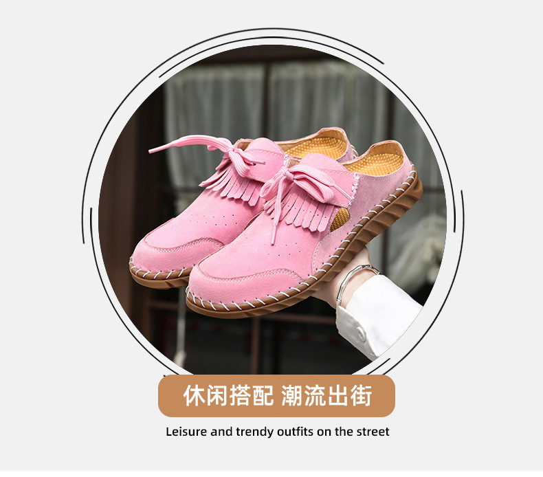怠け者とペダル付きの春夏用屋内用フラットソールハーフアウターウェア、女性用タッセル付きキャビン、ワンパックのトレンディなスリッパ