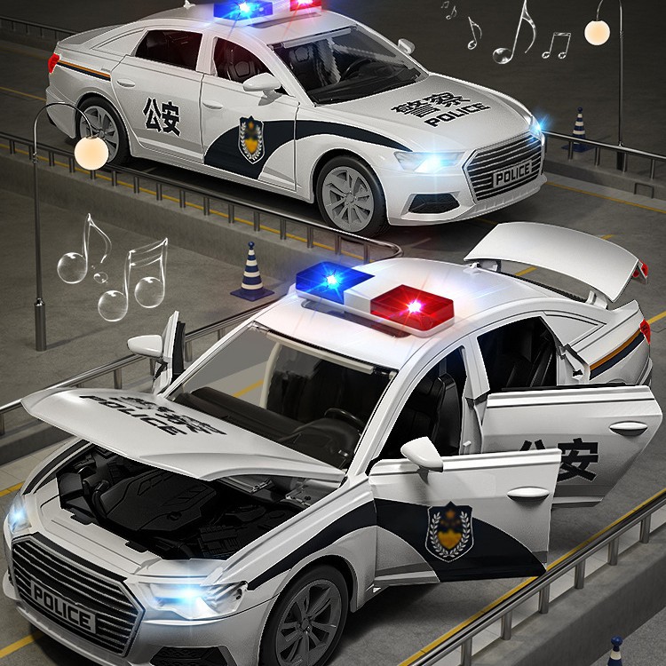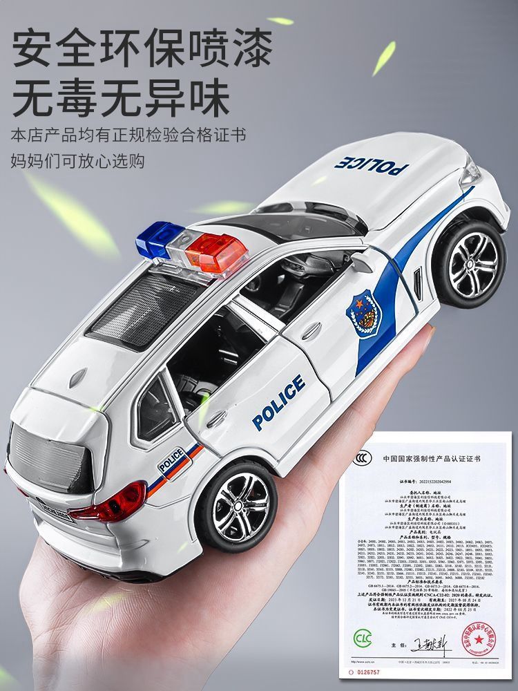 合金製のパトカー、子供用おもちゃの車、大型のシミュレーションカーモデル、特殊警察、公安、男の子のおもちゃの車、馬
