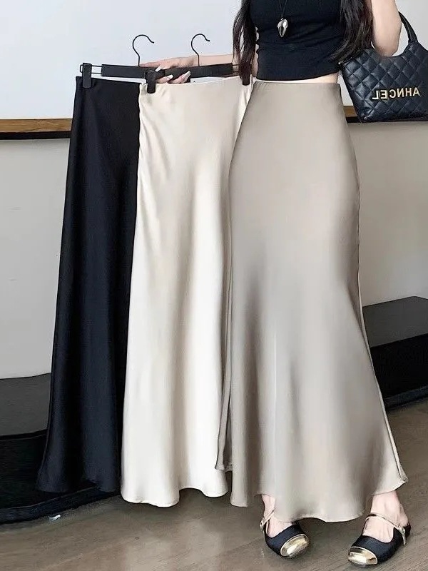 サテンプリーツスカート 2025 夏の新ミッドレングススカート多用途ハイウエスト気質スカート夏