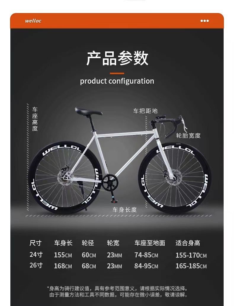 批发公路自行车高碳钢公路超轻碟刹男成人单车跑车24寸26寸实心胎