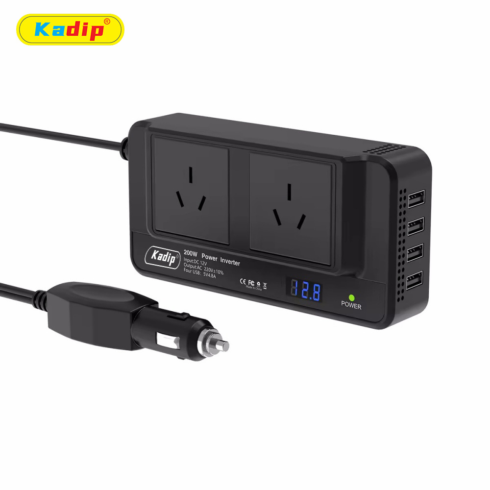 200w車載インバーター英規コンセント電源変換器12v回転220v帯表示インバーター4口usb