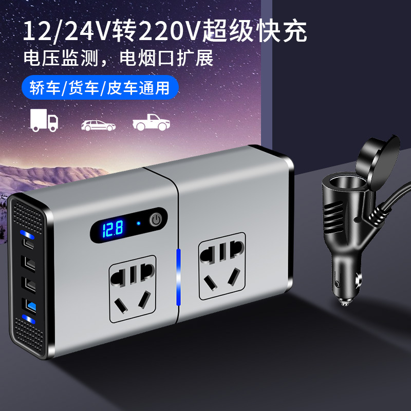 クロスボーダー人気200w多機能車載インバーター12v回転220vインバータ電源変換器通用コンセント