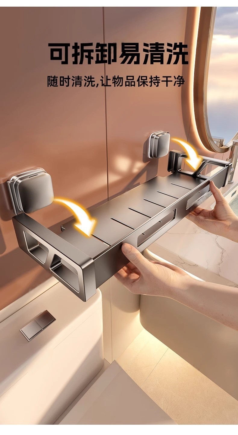 隠された吸盤の棚の浴室のトイレのバスケットは穴を開けないでトイレの洗面台の壁掛けの壁に収納します。