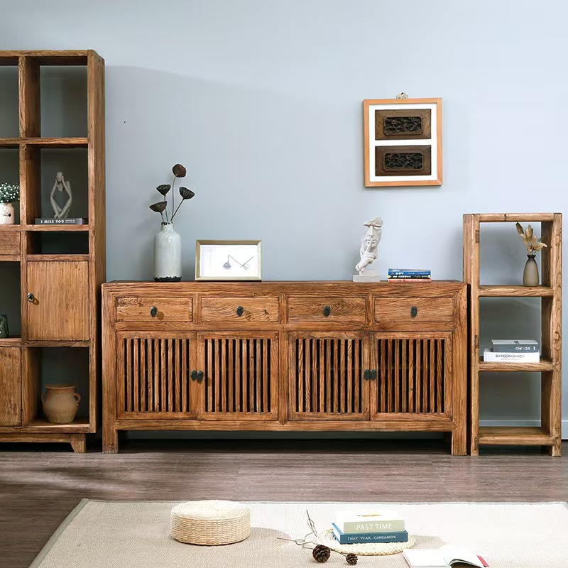 古いニレ材のサイドボード無垢材の家庭用玄関キャビネット靴キャビネットログ収納キャビネット壁掛け茶キャビネット