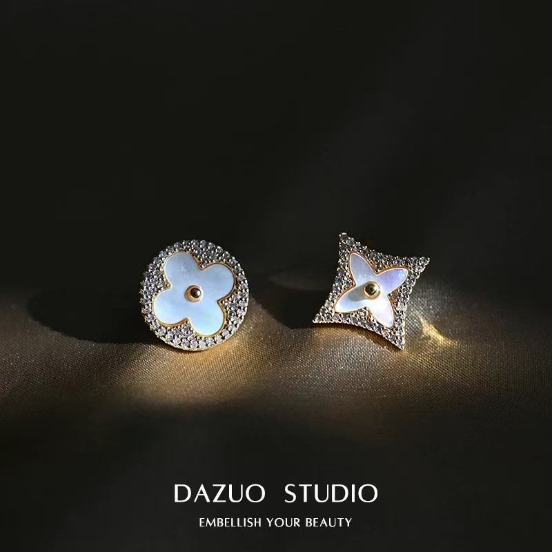 新型フランス式天然貝殻四葉草ピアス洗練されたイヤリング気質高級感イヤリング気質