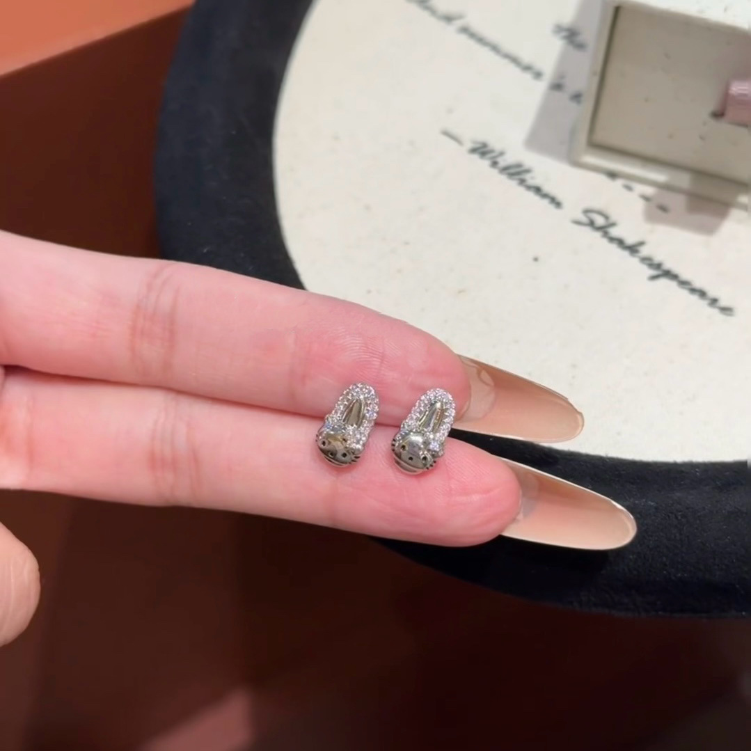 超嗲甜美少女心爆闪猫咪蝴蝶结螺丝耳骨钉 睡觉不用摘