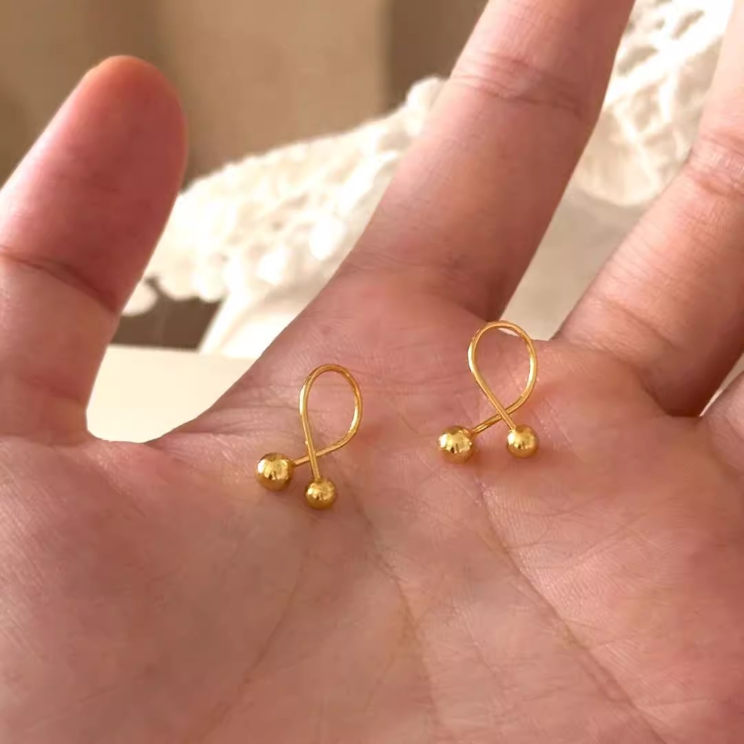 クロススモールゴールドボールイヤリング、スクリューバックルピアス、ニッチデザインゴールドイヤーボーン