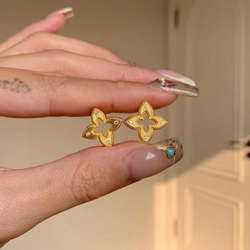 フランスのレトロなシルクの透かし彫りの8芒星の耳のボタンの女性の高級な質感のファッションの百合の設計のフラッシュドリルの軽い贅沢な耳飾り