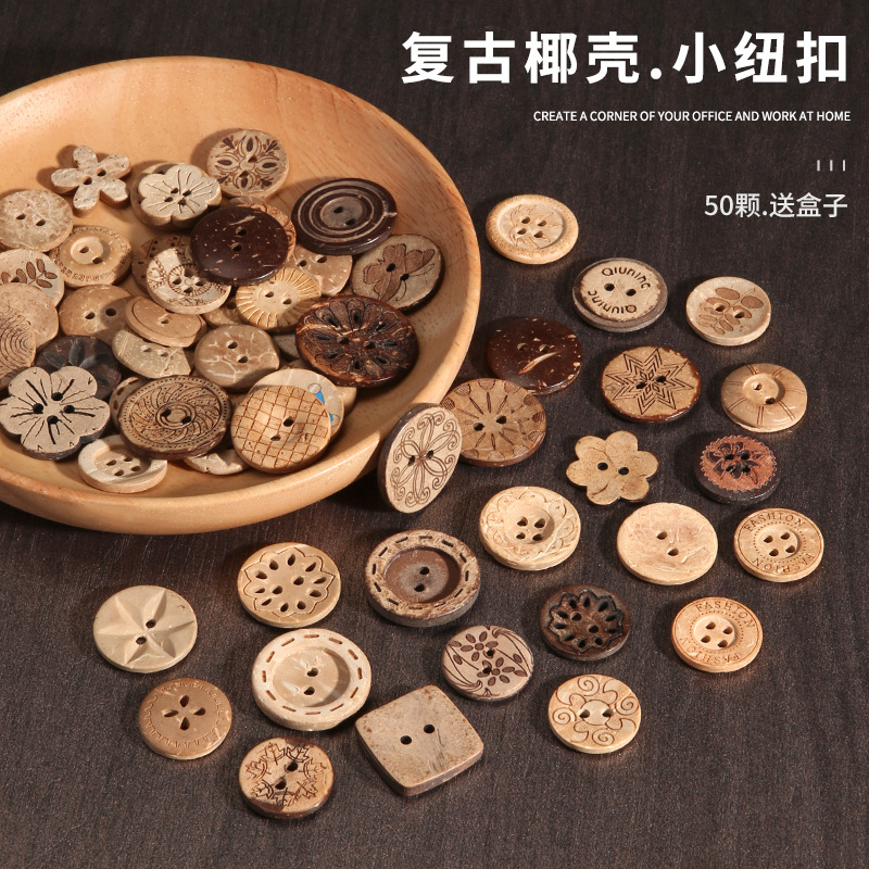 レトロなボタン、特殊な形の木製ボタン、手作りの DIY 多用途の衣類装飾ペンダント、ココナッツシェルの衣類アクセサリー