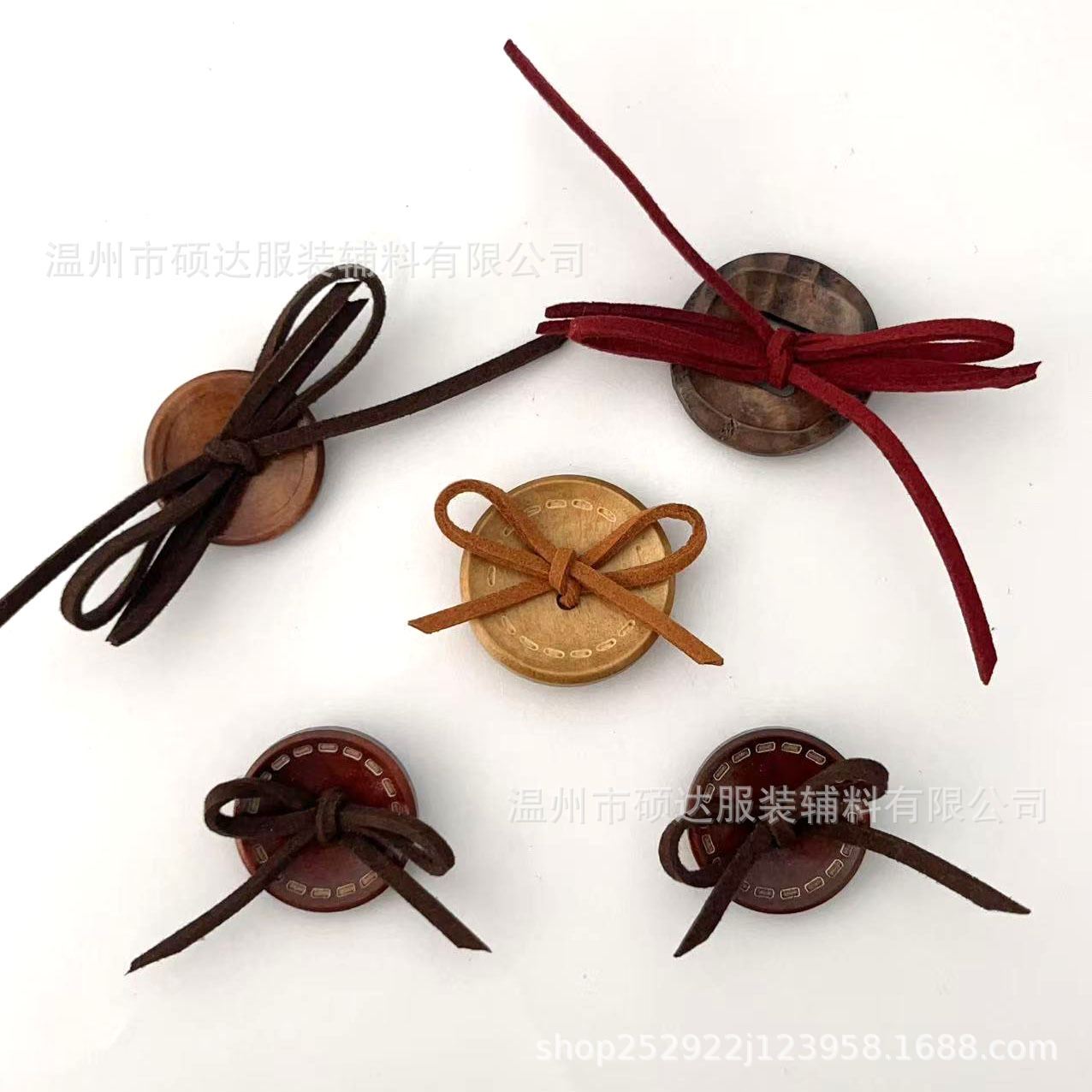 新款圆形木扣手工皮绳蝴蝶结两眼纽扣复古甜美风大衣毛衣外套装饰