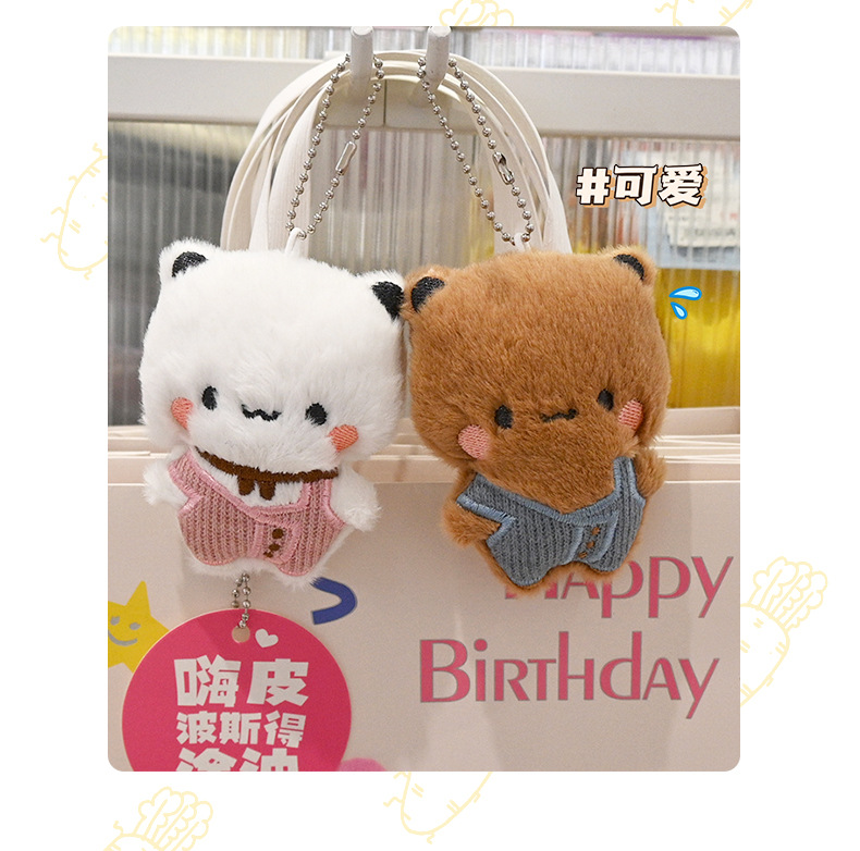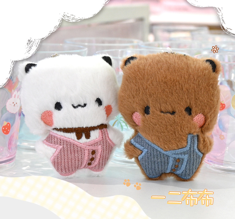 爆款一二布布毛绒玩偶公仔挂件可爱吱吱叫小熊情侣包包钥匙扣挂饰