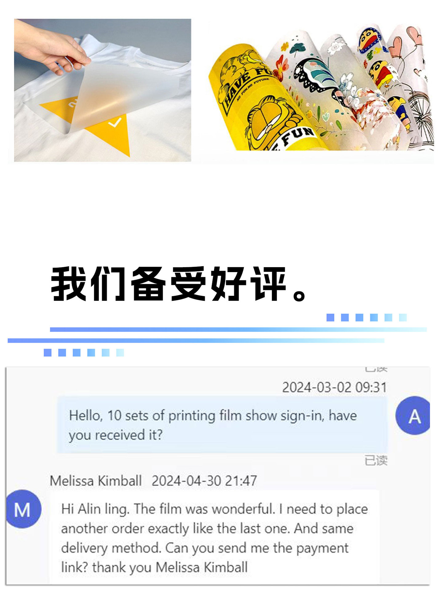 工場直販両面マット熱転写フィルム熱転写フィルム 30cmdtf フィルム明るい色のホットとコールド