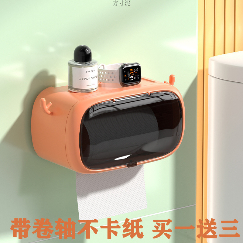 トイレットトイレットペーパーボックストイレットティッシュボックストイレットペーパーボックス壁挂け式可爱いティッシュペーパーロールボックスシェルフ収纳ラック