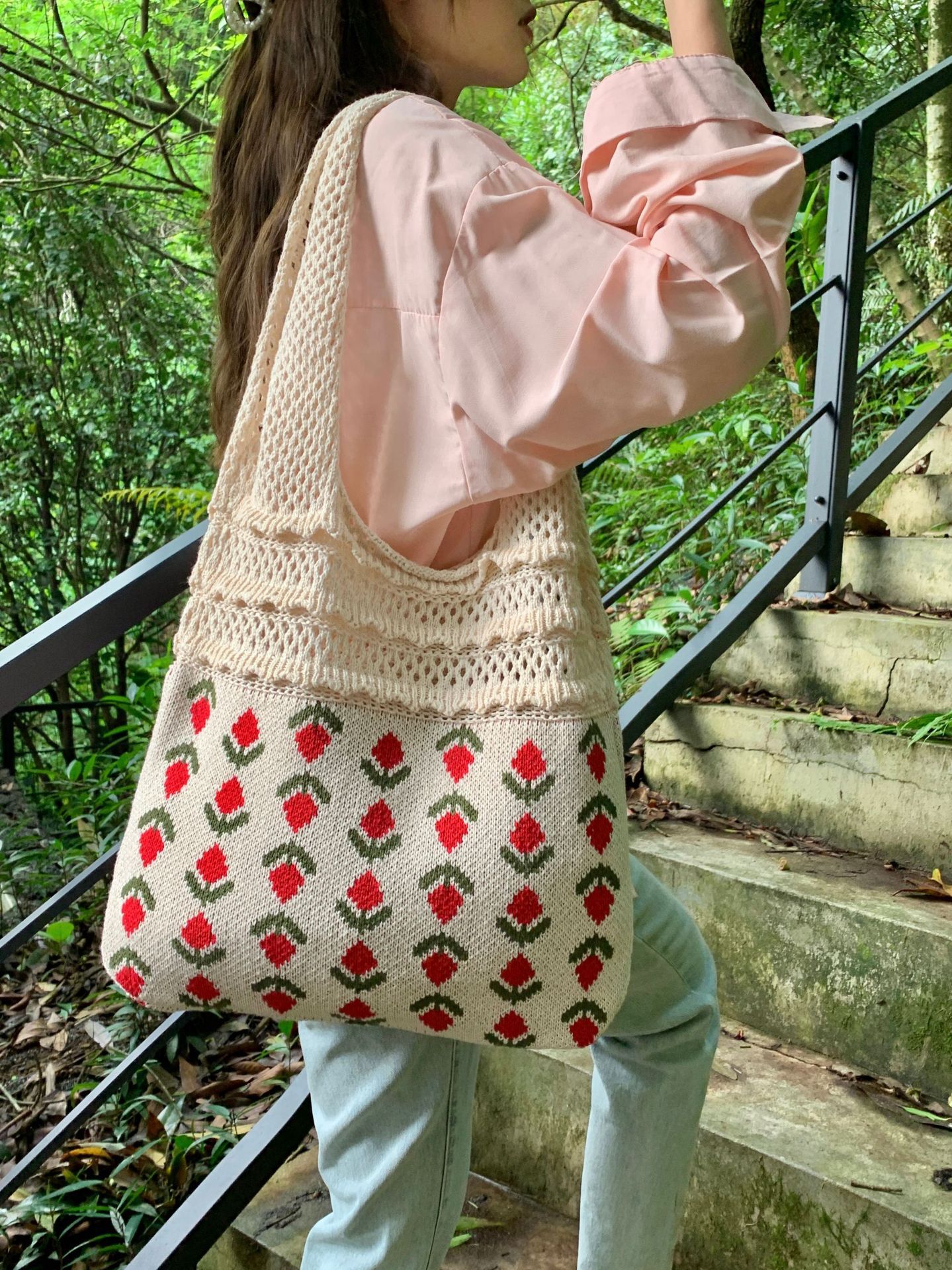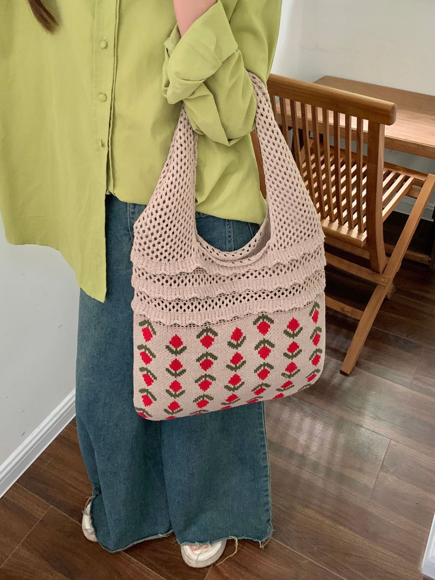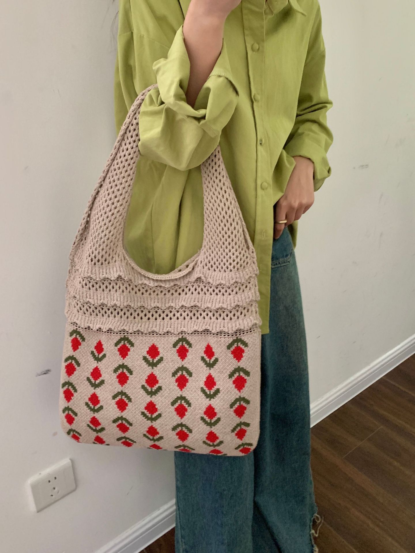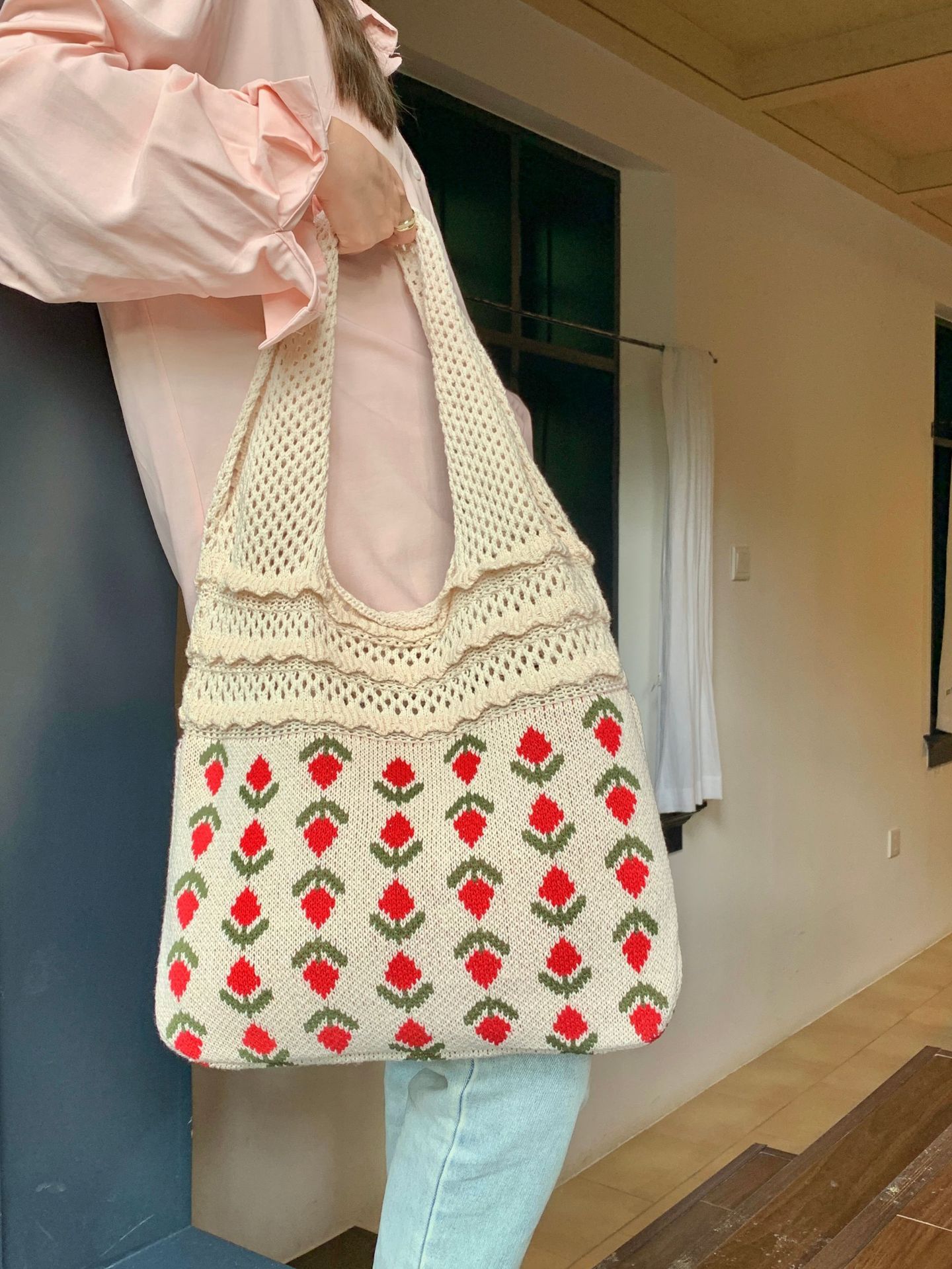 2024新型insバッグクロスボーダー専用ニットバッグ大容量トートバッグさくらんぼショルダーバッグ
