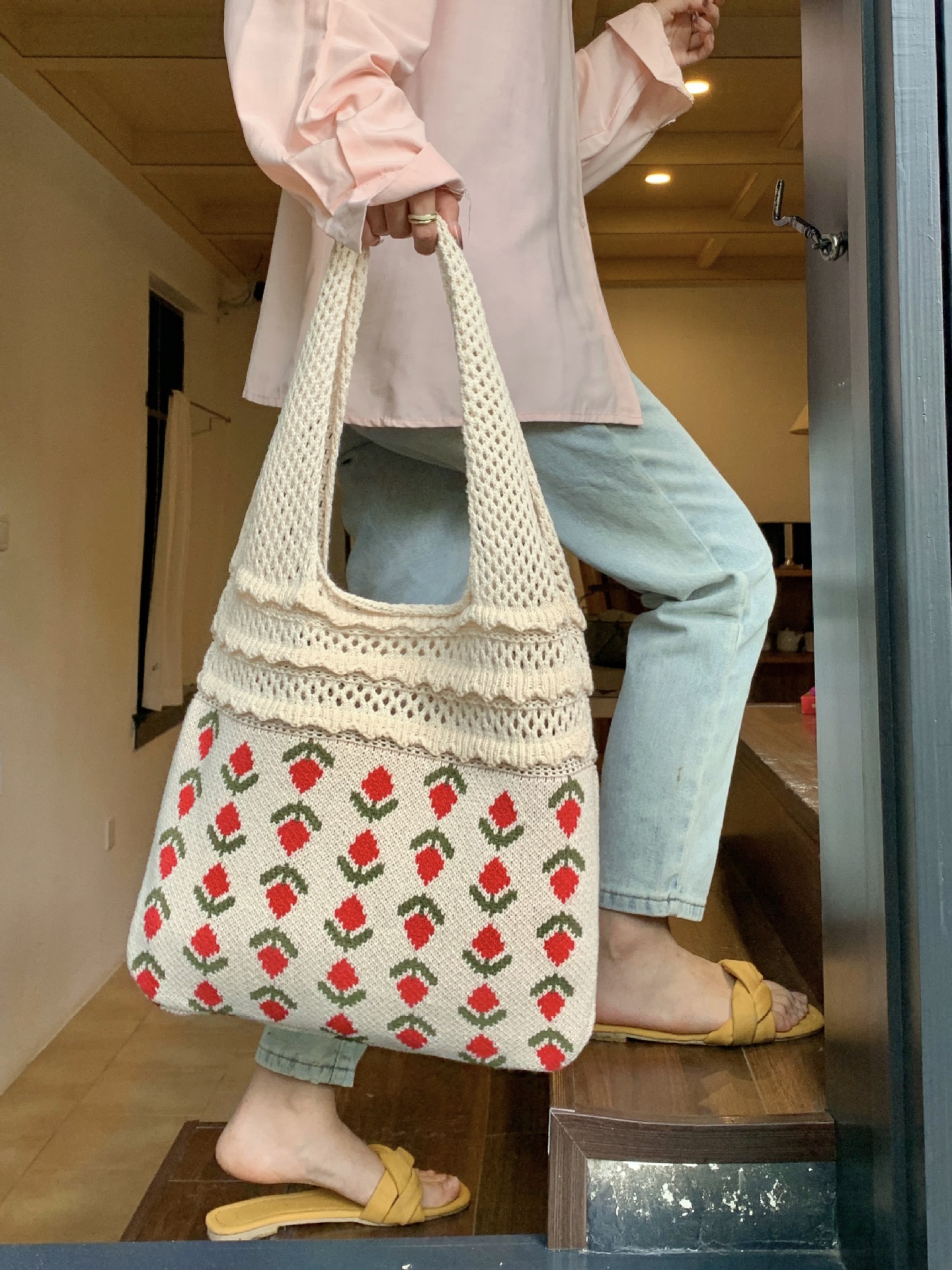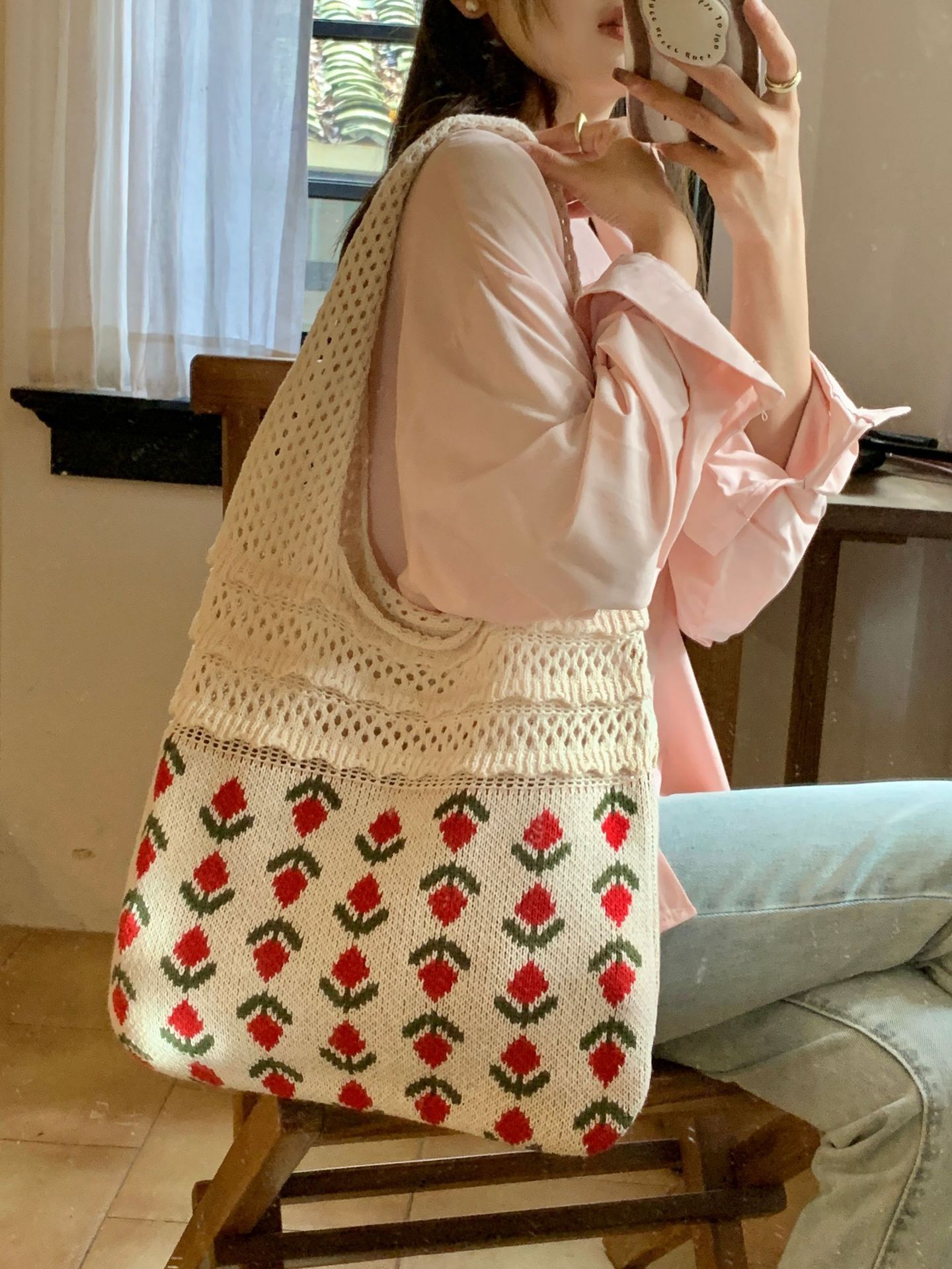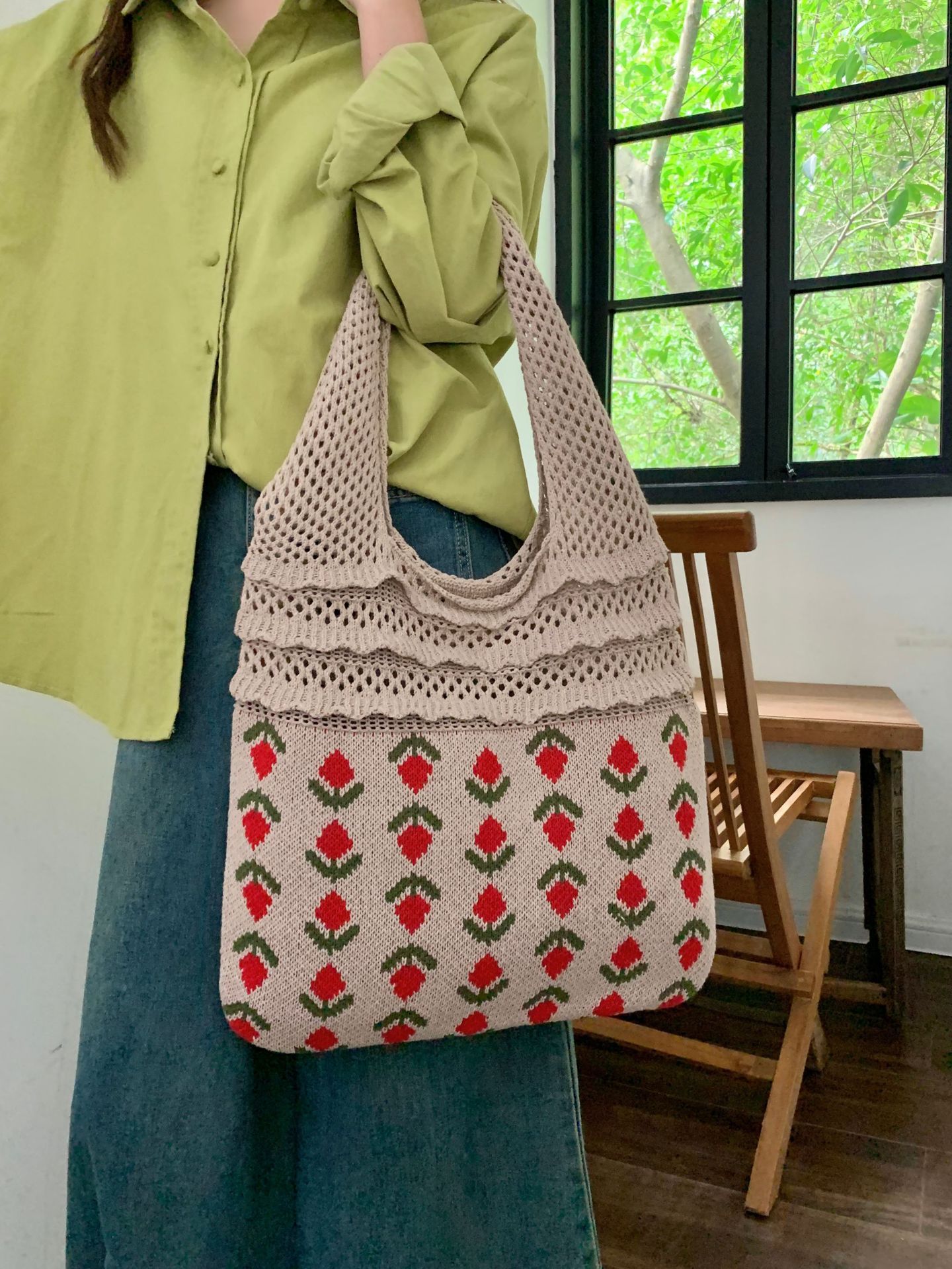 2024新型insバッグクロスボーダー専用ニットバッグ大容量トートバッグさくらんぼショルダーバッグ