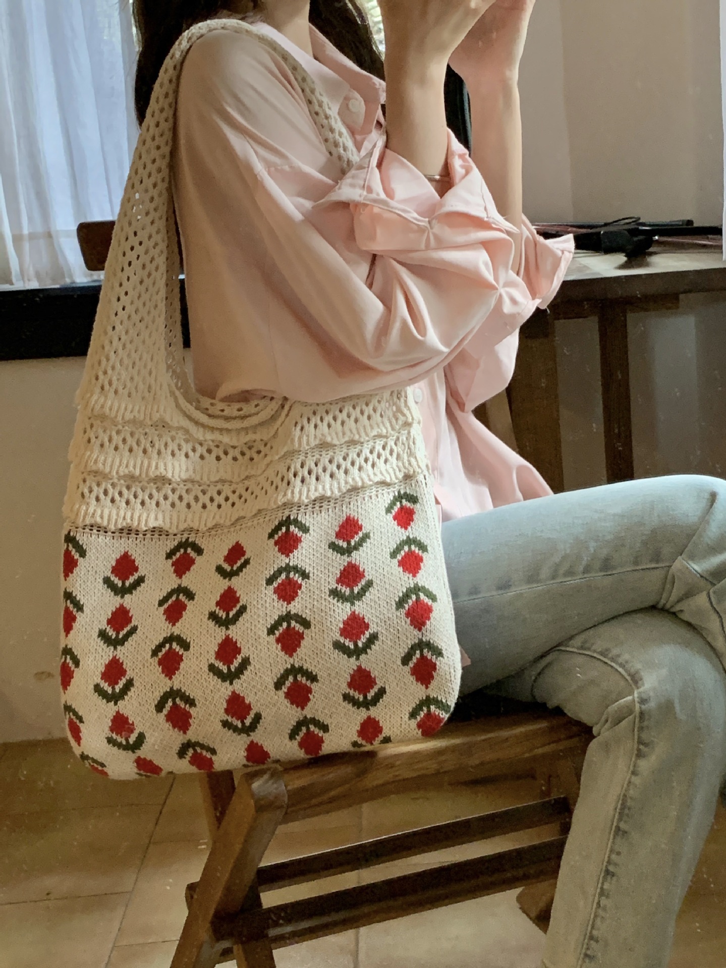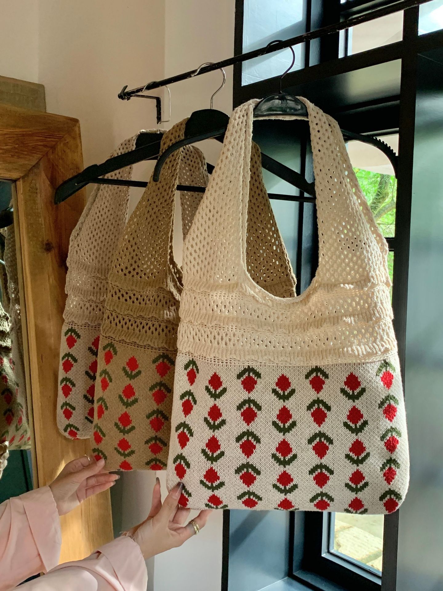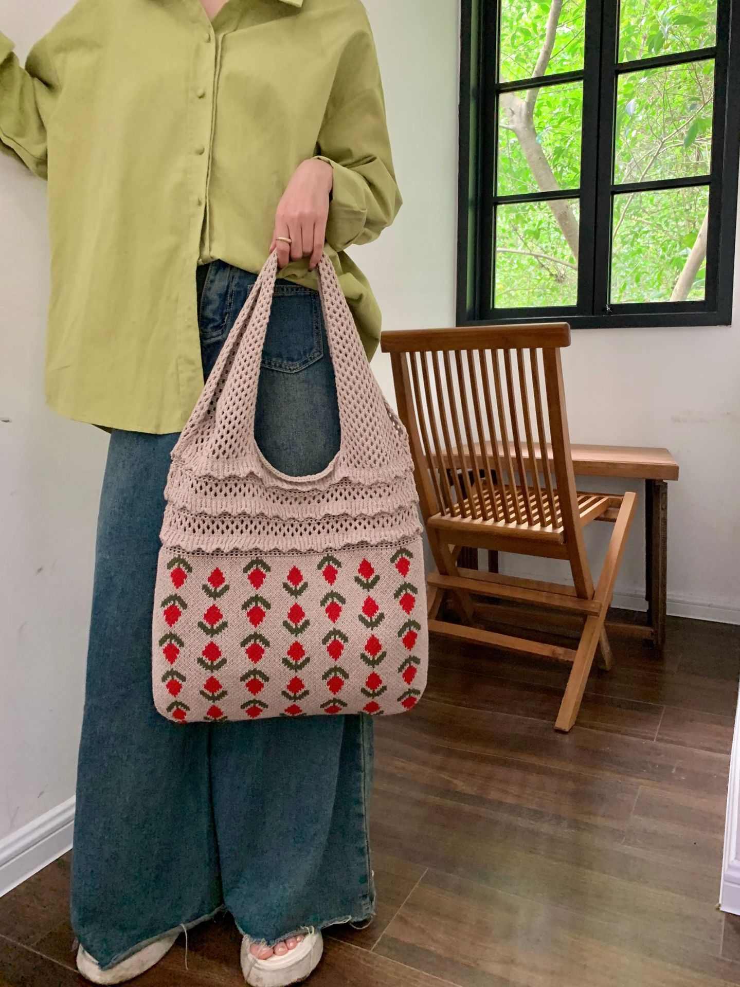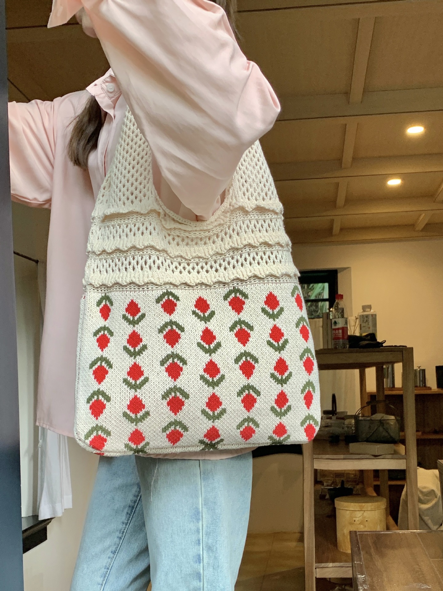 2024新型insバッグクロスボーダー専用ニットバッグ大容量トートバッグさくらんぼショルダーバッグ