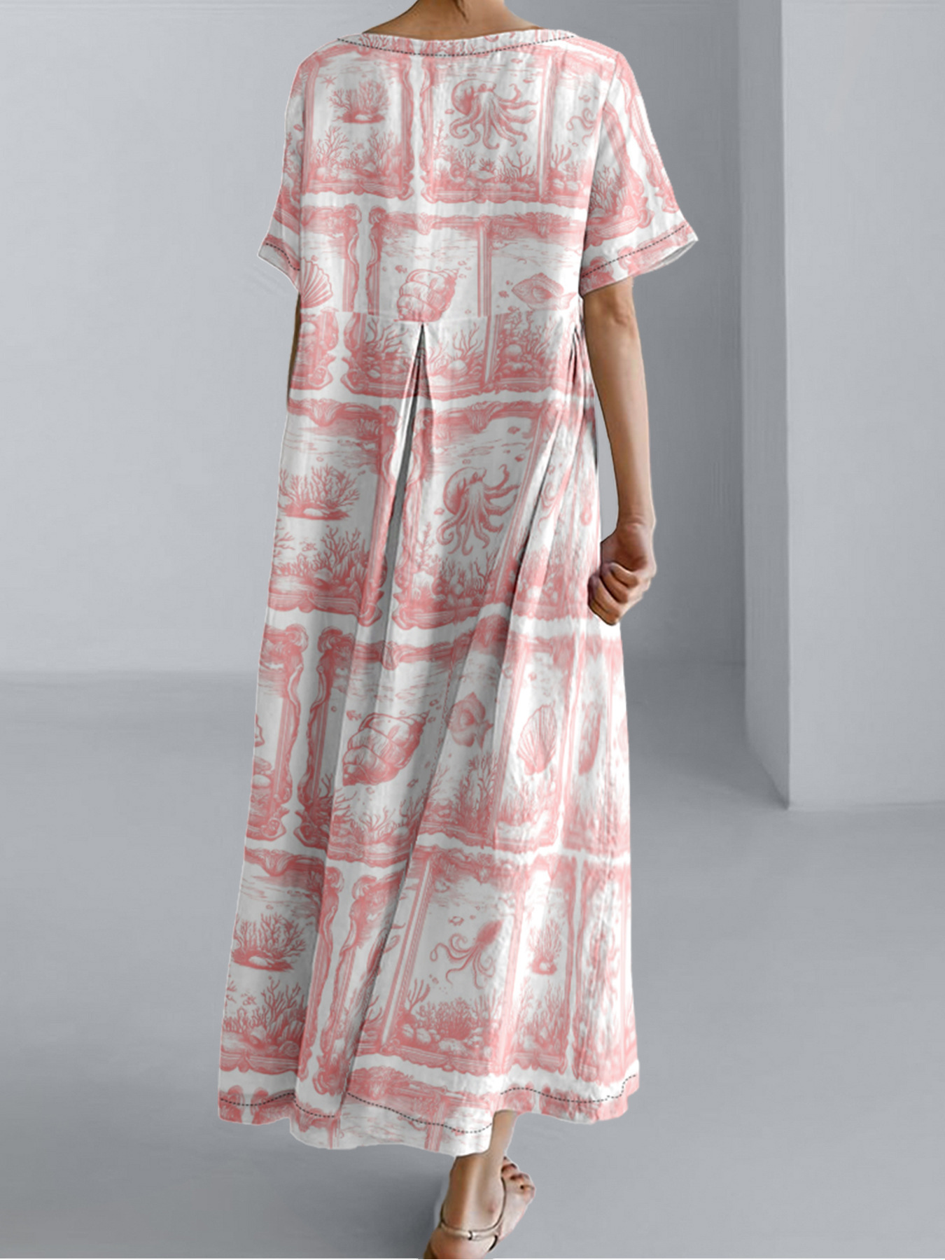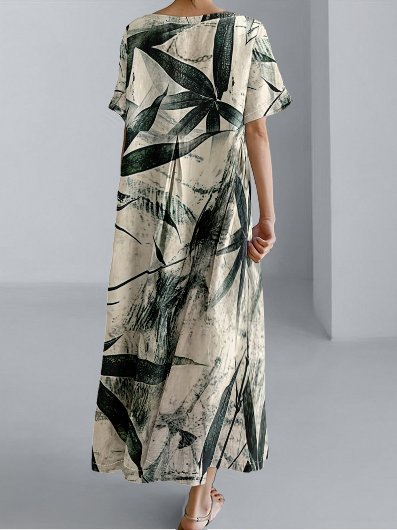 CP13223A08 Amazon レディース ドレス デジタルプリント柄 ラウンドネック 半袖 ルーズドレス