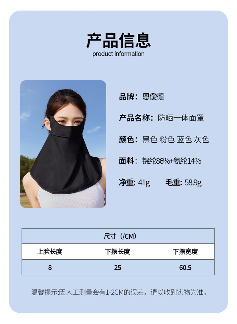 恩愛徳春夏秋首保護日焼け止めマスク紫外線防止運転日よけ男女涼感通気顔マスク