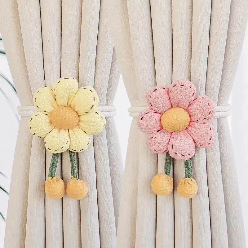 创意窗帘花朵绑带可爱一对装可调节纱帘收拢卧室束带收纳扣环装饰