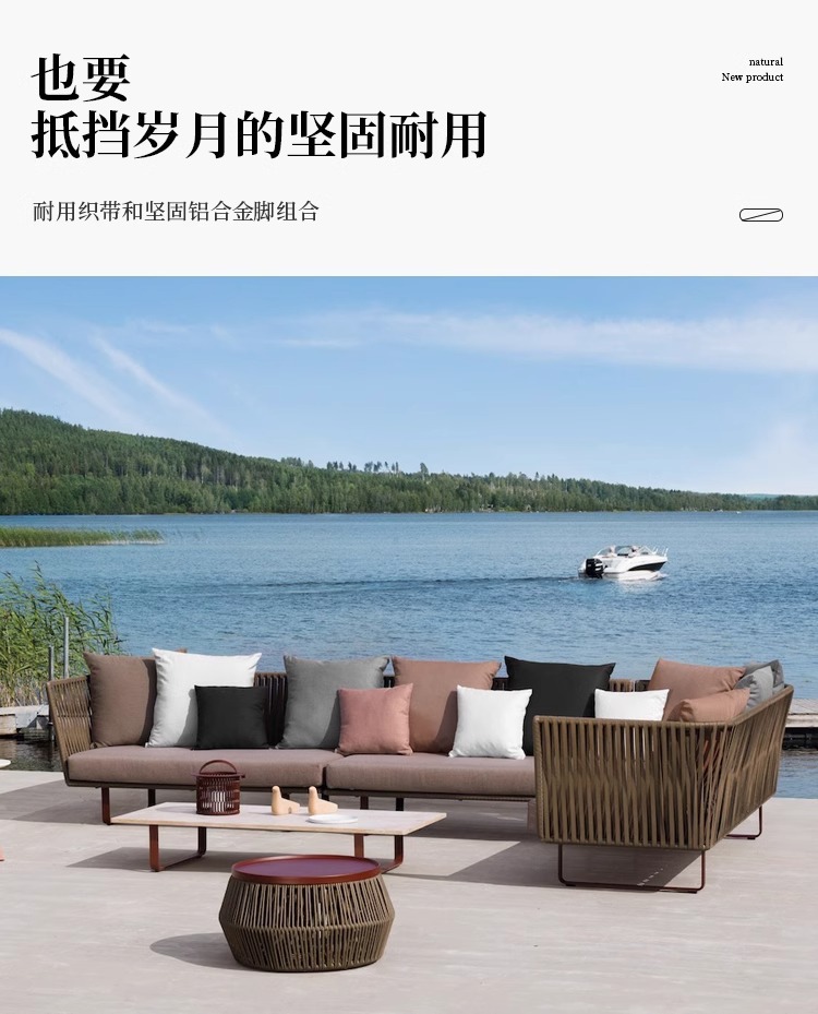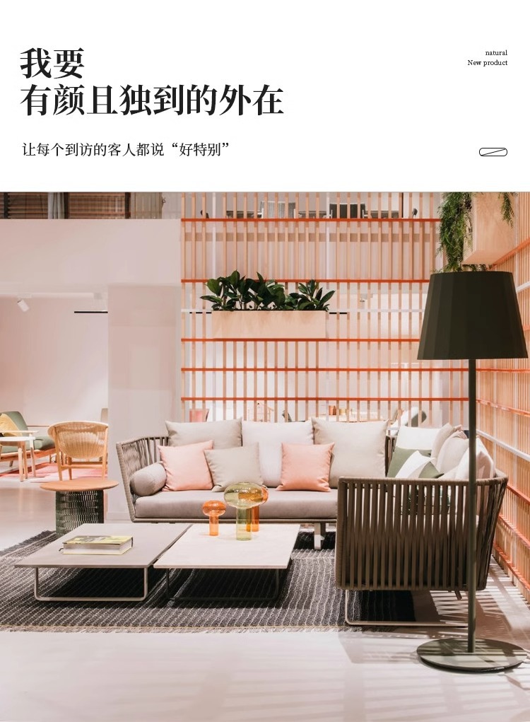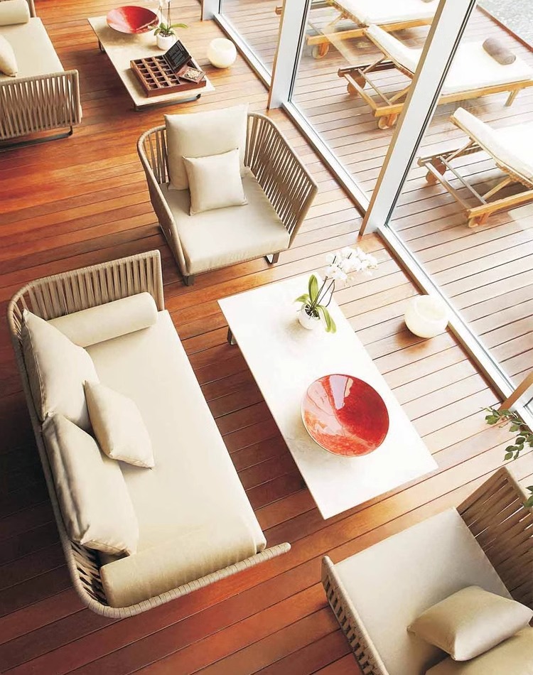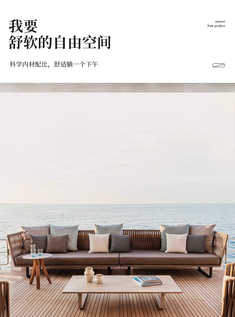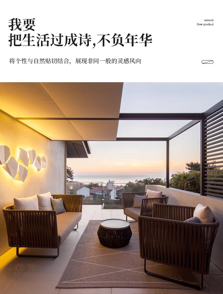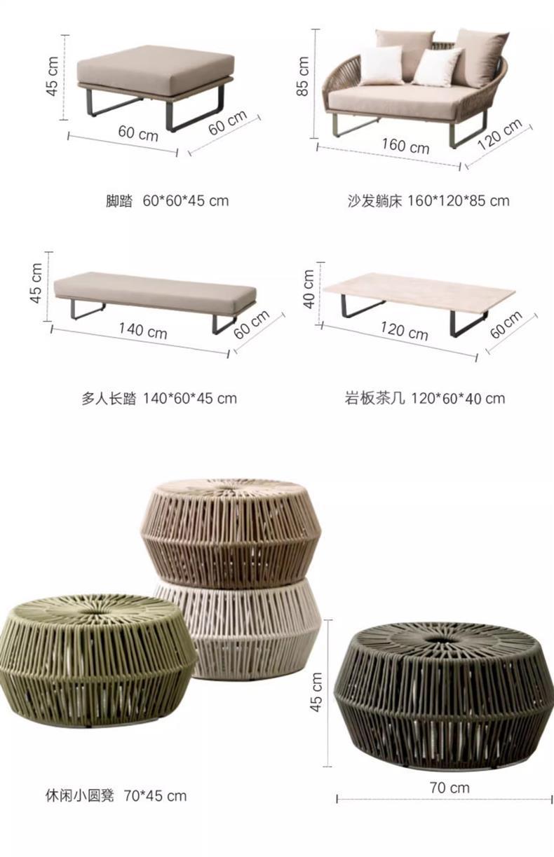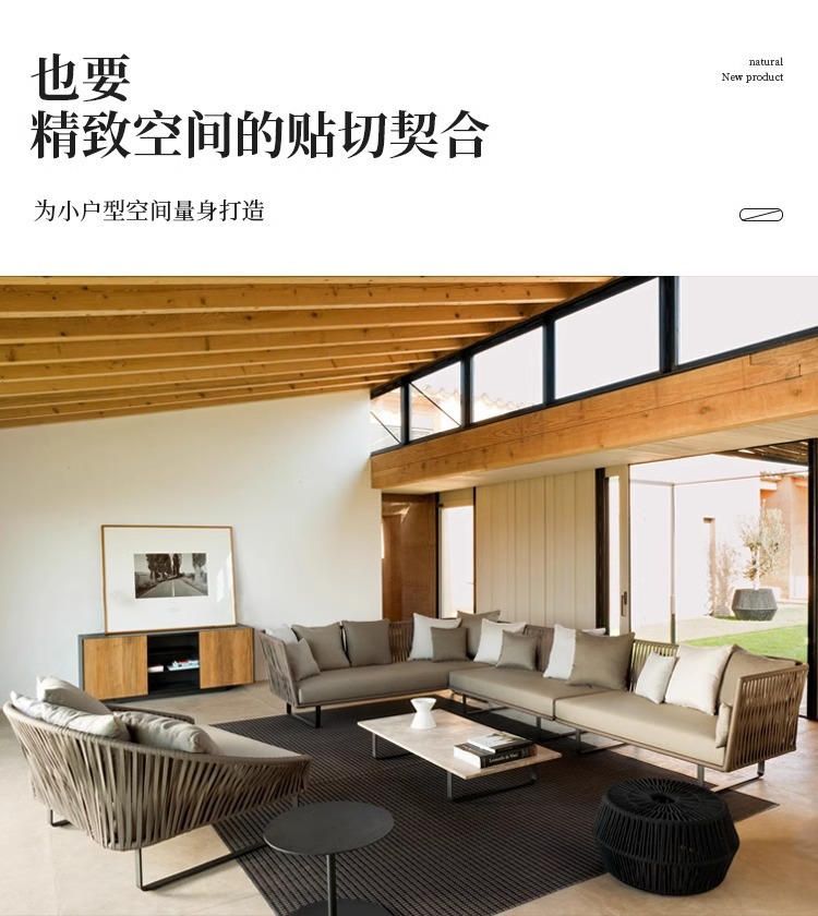 屋外籐ソファガーデンテラスヴィラ中庭バルコニーサンルームデザイナーレジャー無垢材ソファの組み合わせ