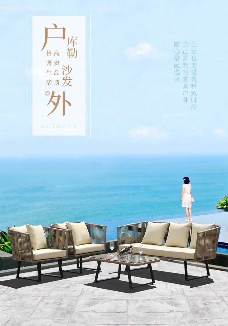 屋外ソファ組み合わせ中庭ホテルテラスヴィラB&Bレジャー籐椅子屋外防水日焼け止め籐家具