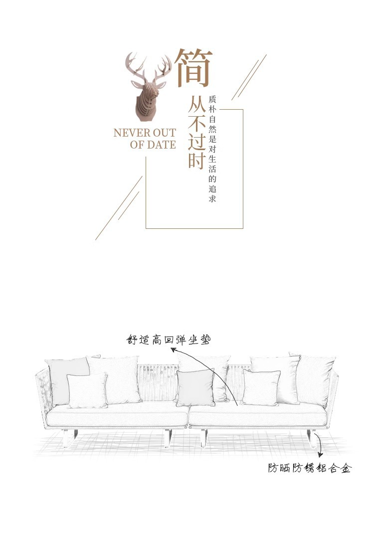 北欧屋外ソファ中庭ヴィラ屋外バルコニーガーデンテラス無垢材ソファチークコーヒーテーブル組み合わせ家具