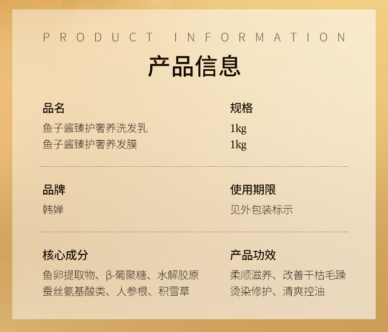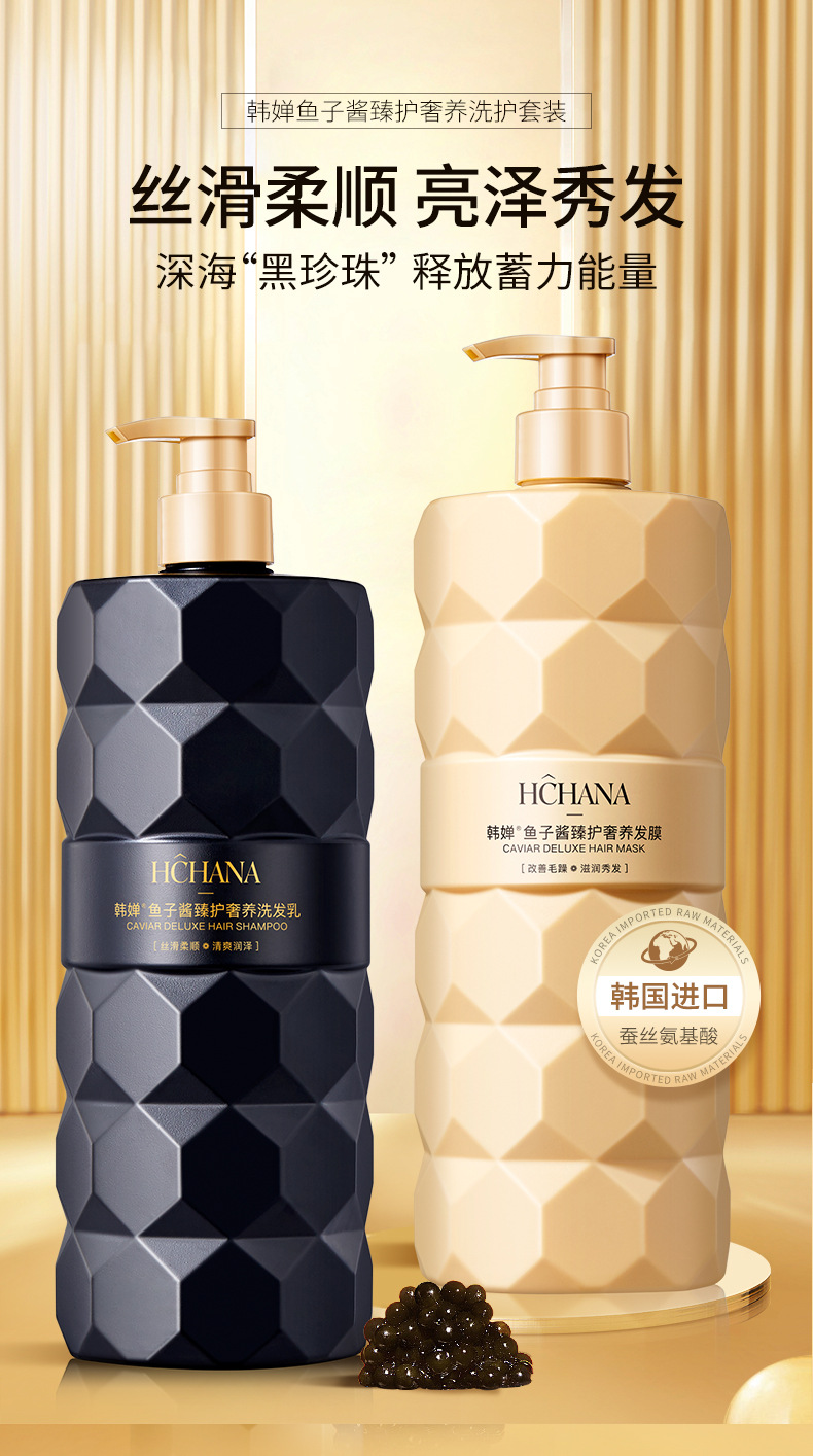 韩婵氨基酸润肤清爽沐浴露鱼子酱奢养臻护洗发乳洗发水发膜家庭装