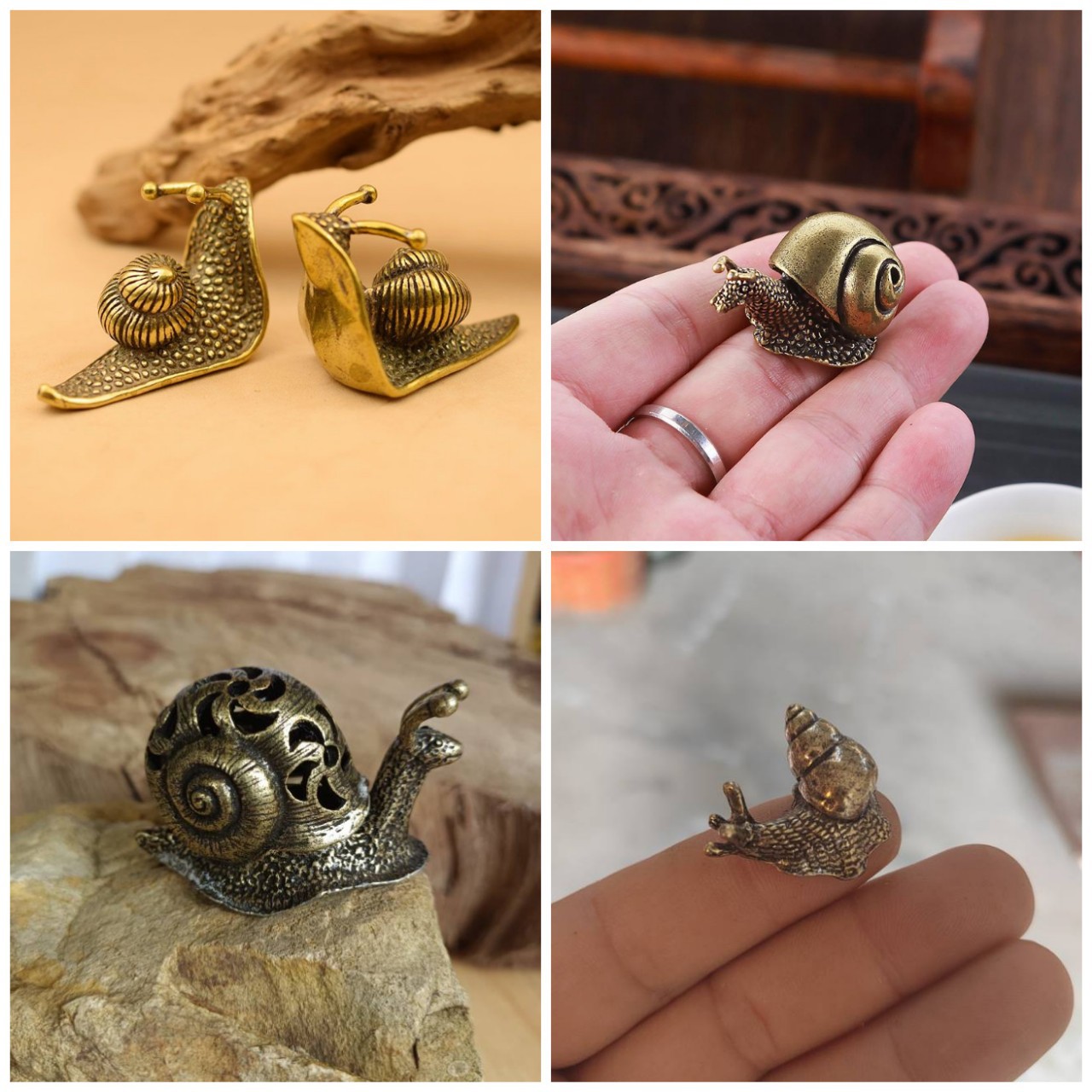 カタツムリの小さい置物の中実の純粋な黄銅のかわいいデスクトップの古銅の茶のかわいがる装飾品の工芸品の手作りの復古の銅のカタツムリ