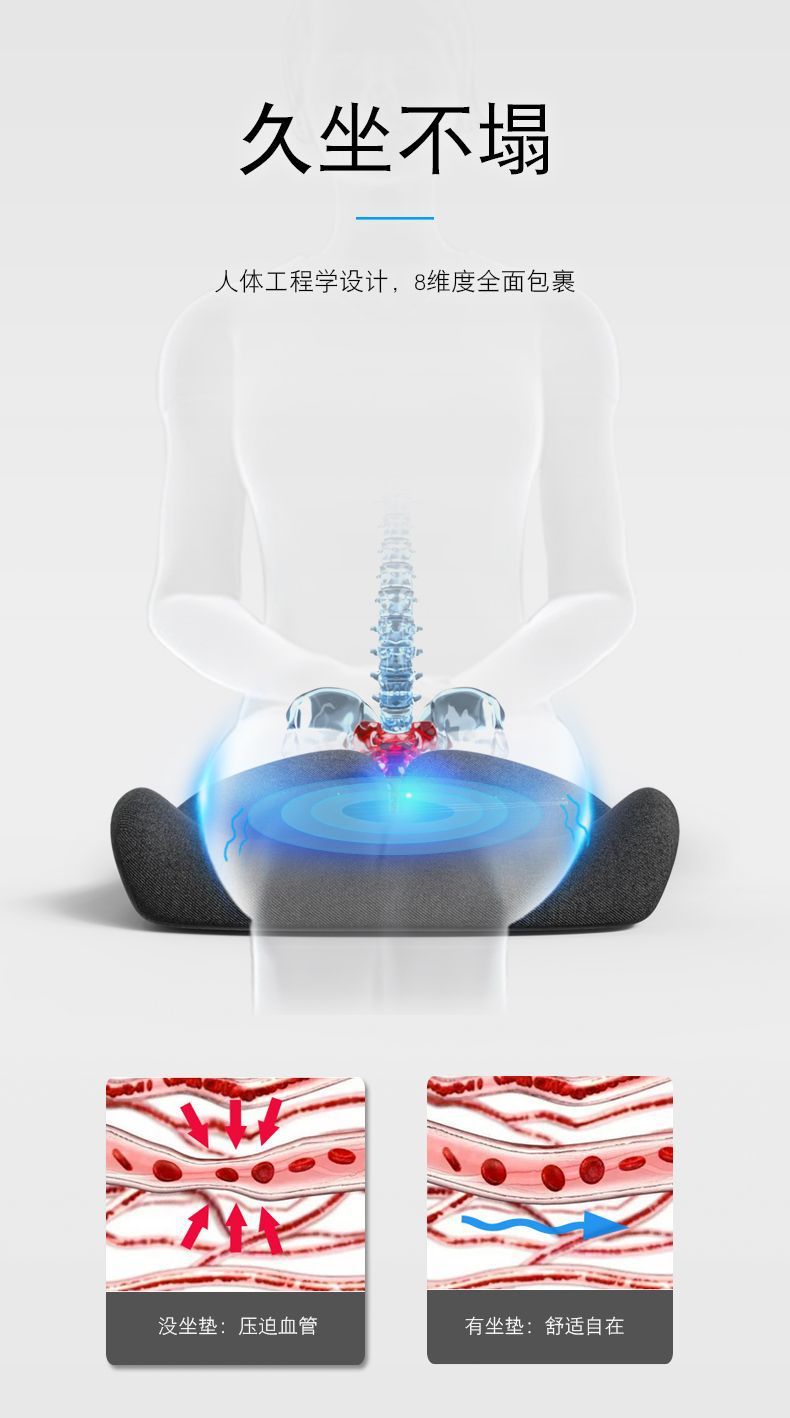 クッションオフィスチェアクッション座りがちなアーティファクト厚みのある非崩壊低反発シートクッションアイスシルク通気性のあるメンズおならクッション