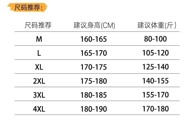 エム(40-52.5kg),エル(52.5-60kg),XL(60-70kg),2XL(<70-80kg)),3XL (80-90kg 個),4XL (90-97.5kg ポンド),5XL (97.5-105kg パンチ)