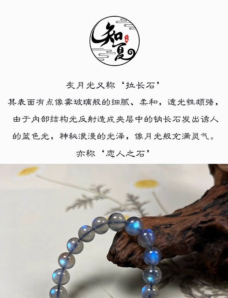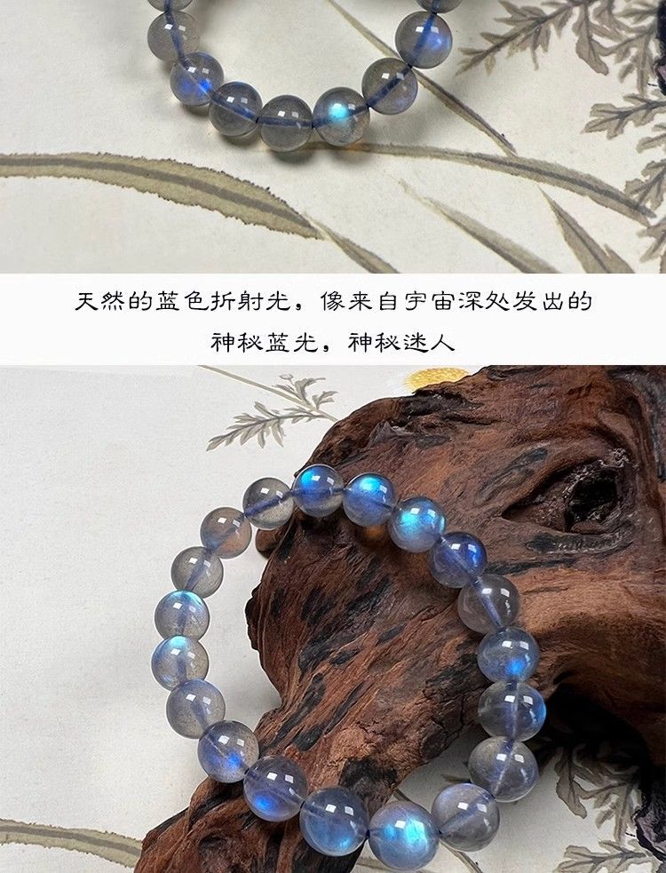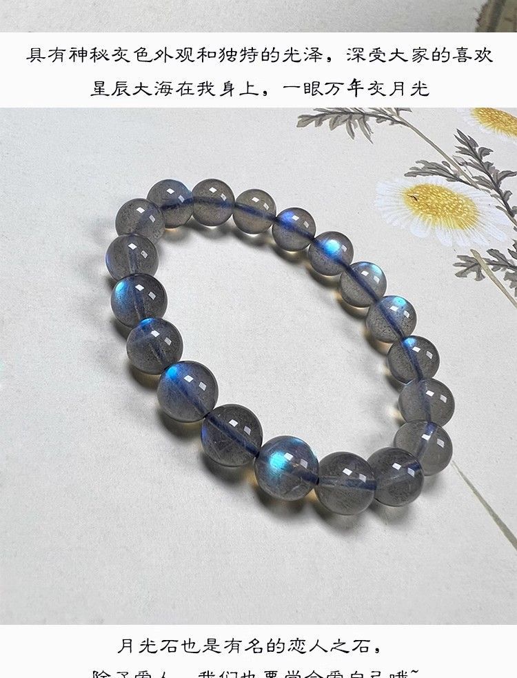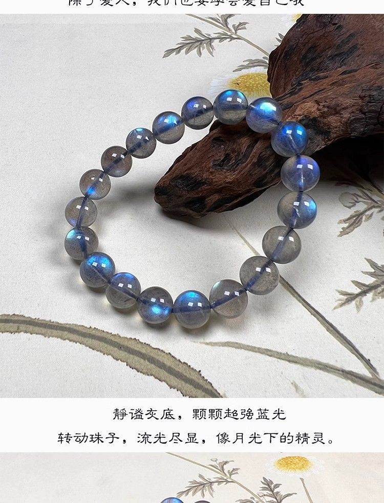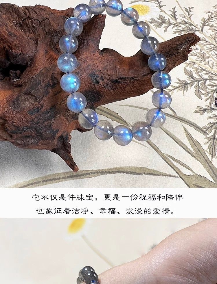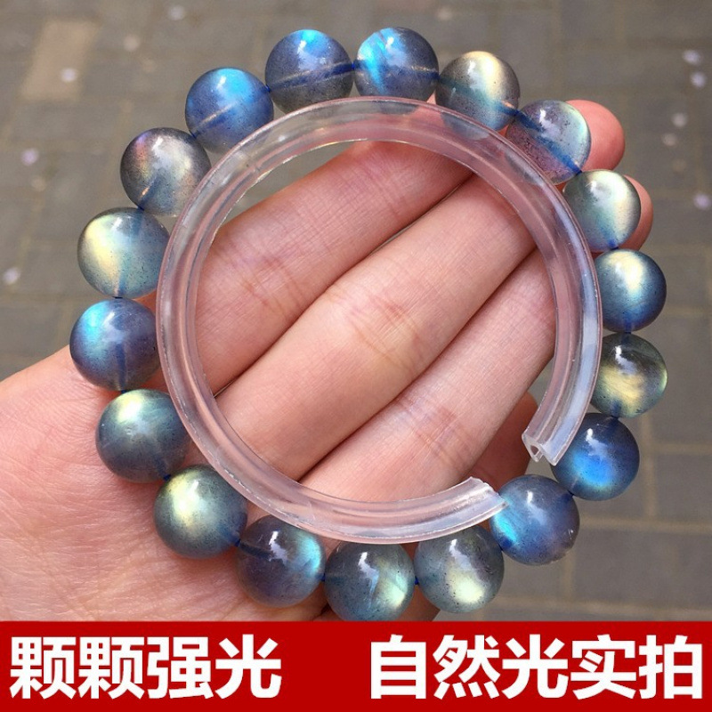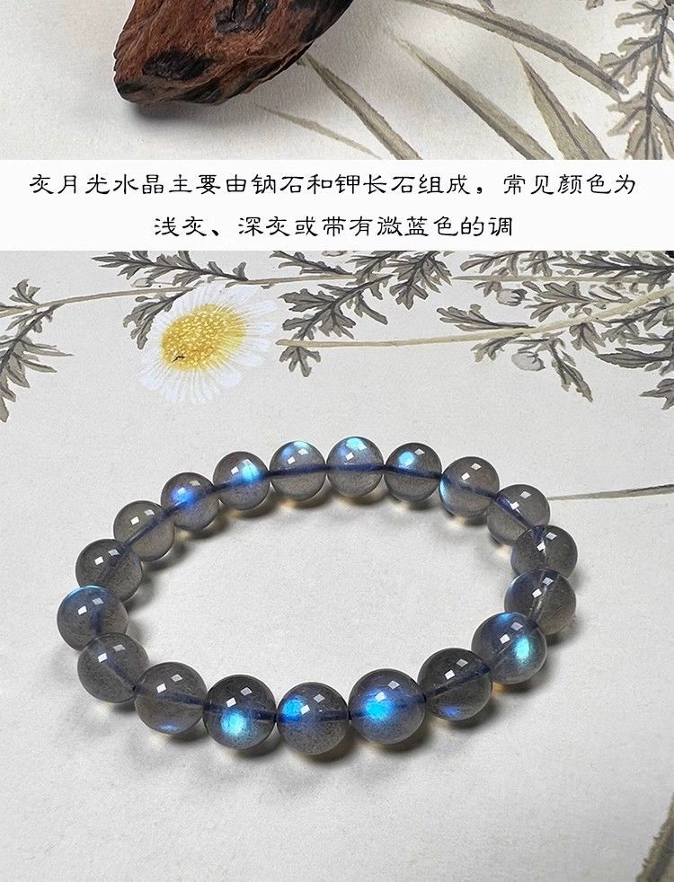 天然氷種灰月光ブレスレット長石ブレスレット手串強光全ブルーライト月光石水晶アクセサリー