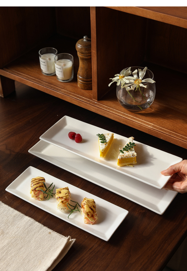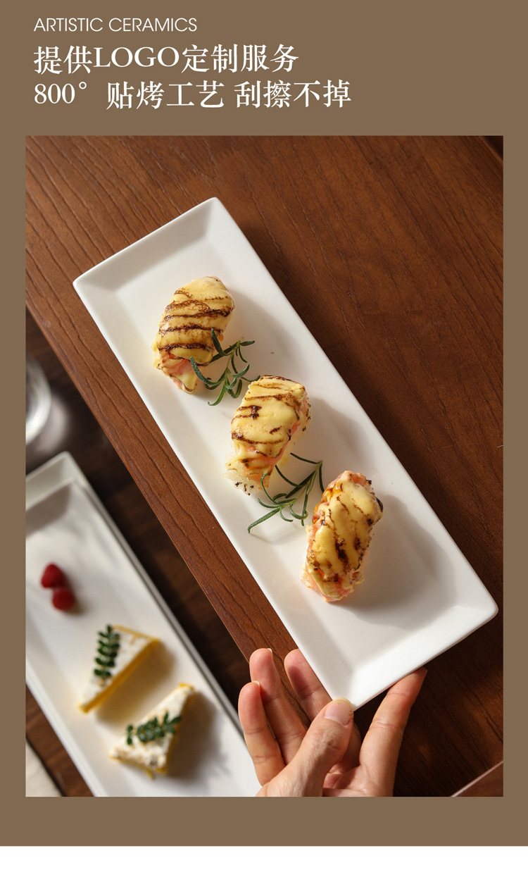 カスタム純白陶磁器食器創意長条日本式食事皿寿司皿長方形お菓子焼肉皿卸売り