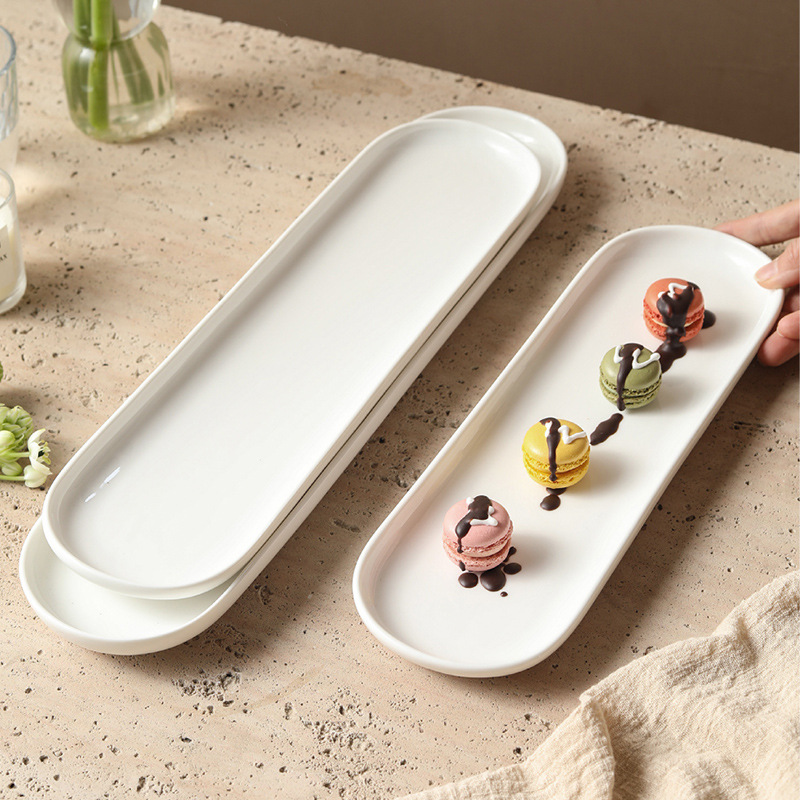北欧ロングプレートセラミック洋風デザートペストリープレートホテルクラブクリエイティブデザートプレート洋菓子パンプレート