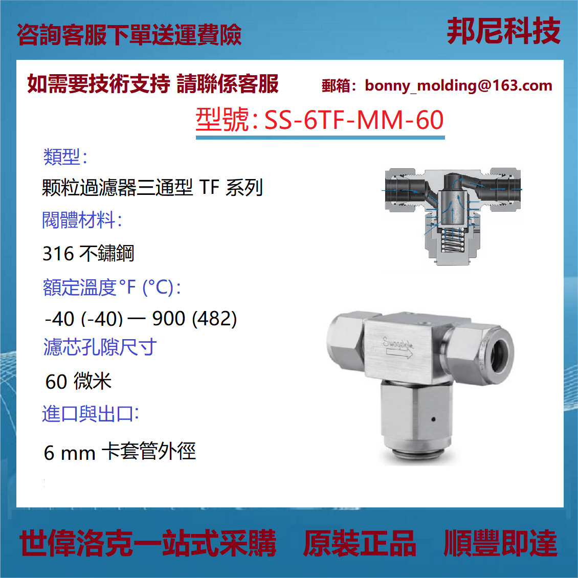 SS-6TF-MM-60 スワゲロック ステンレス製三方型粒子フィルター