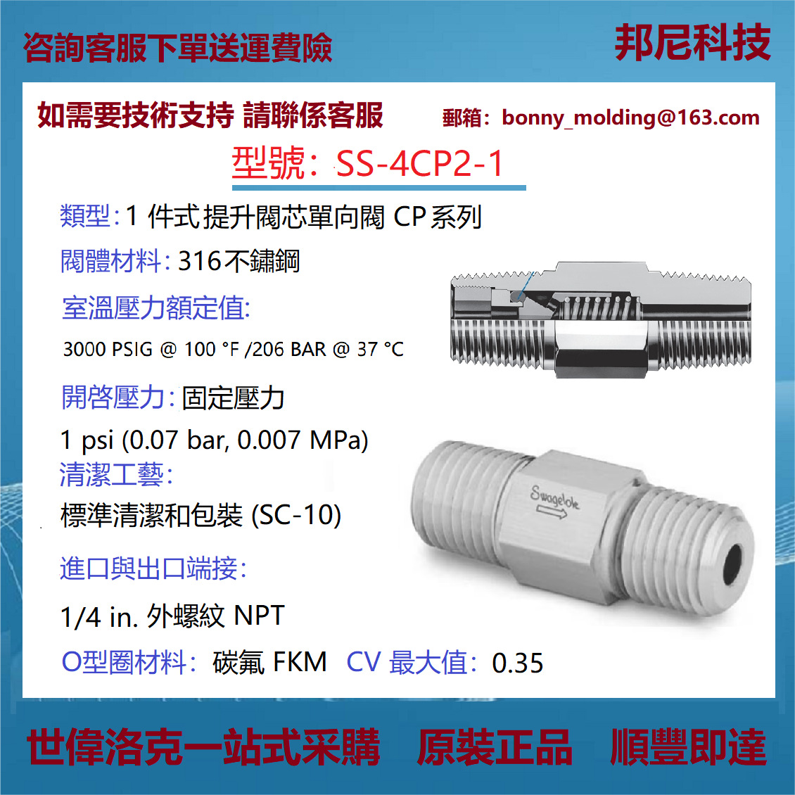 SS-4CP2-1世偉ロックSwagelokステンレスリフト弁芯単方向弁固定圧力CPシリーズ