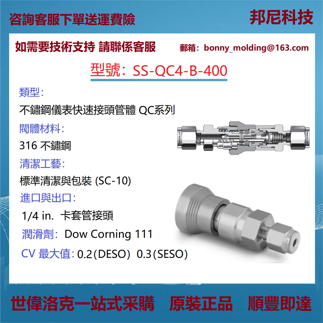 SS-QC4-S-400K3世偉ロックSwagelokステンレス計器快速継手管茎QCシリーズ
