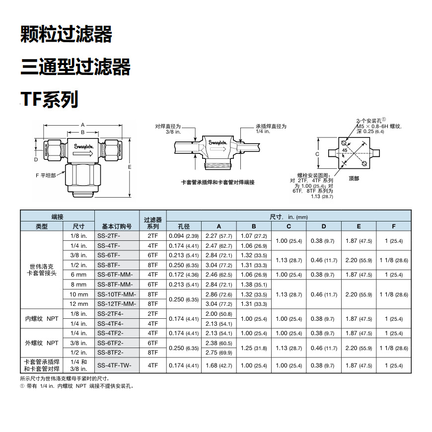 SS-4TF-7 スワゲロック ステンレス製三方型粒子フィルター
