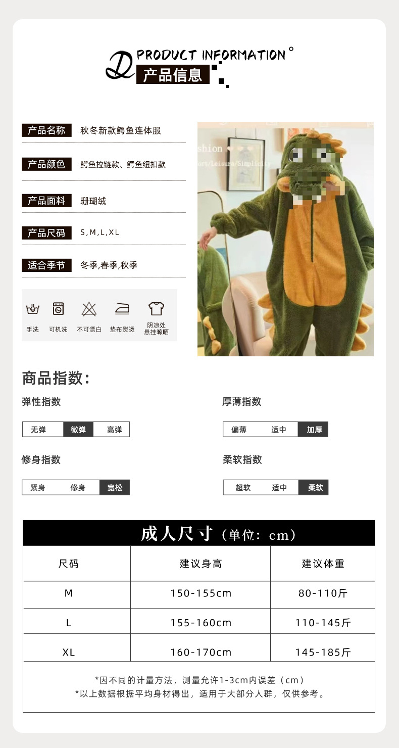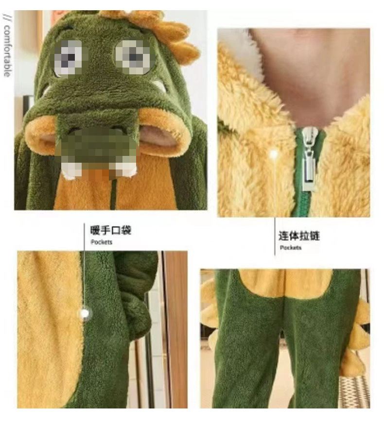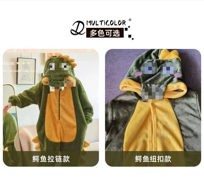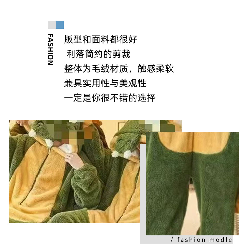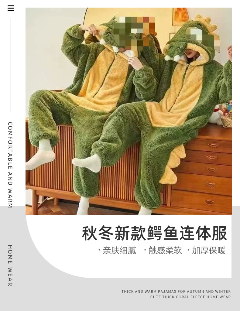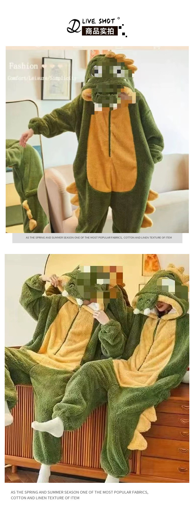 フランネル秋冬新作ワニジャンプスーツ恐竜かわいいカップル漫画長袖ホームウェアパジャマ