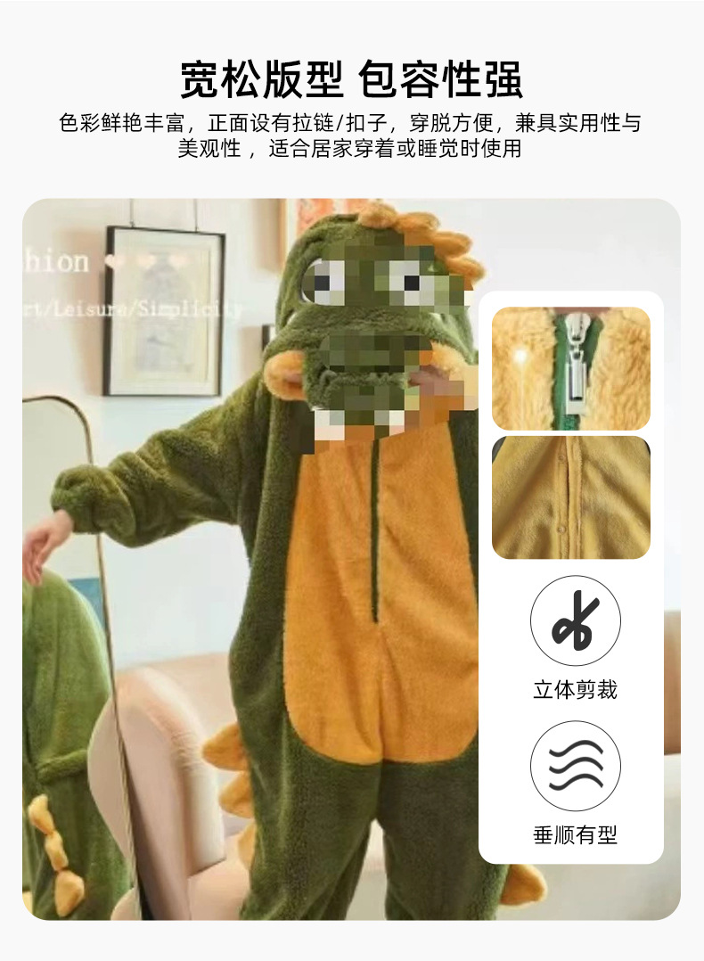 恐竜パジャマ 秋冬 フランネル 動物柄 半袖 ホームウェア クロスボーダー ワンピースコスチューム パフォーマンス衣装 親子コーデ
