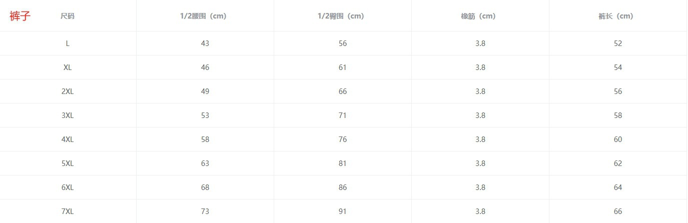 サイズ L,XL,2XL,3XL,4XL,5XL,6XL,7XL