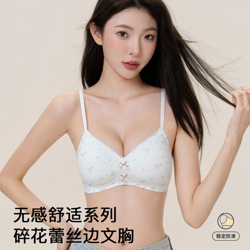 甜美蕾丝边碎花内衣女小胸聚拢显大无钢圈收副乳薄款文胸罩8107