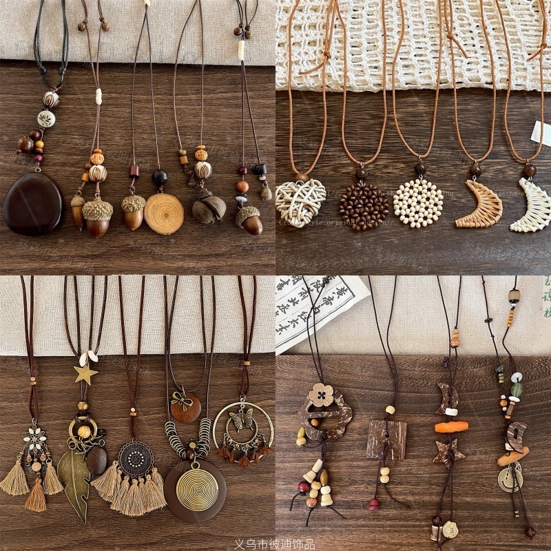 木质前调 国风长款蜡绳橡果吊坠项链新中式禅意设计感毛衣链配饰