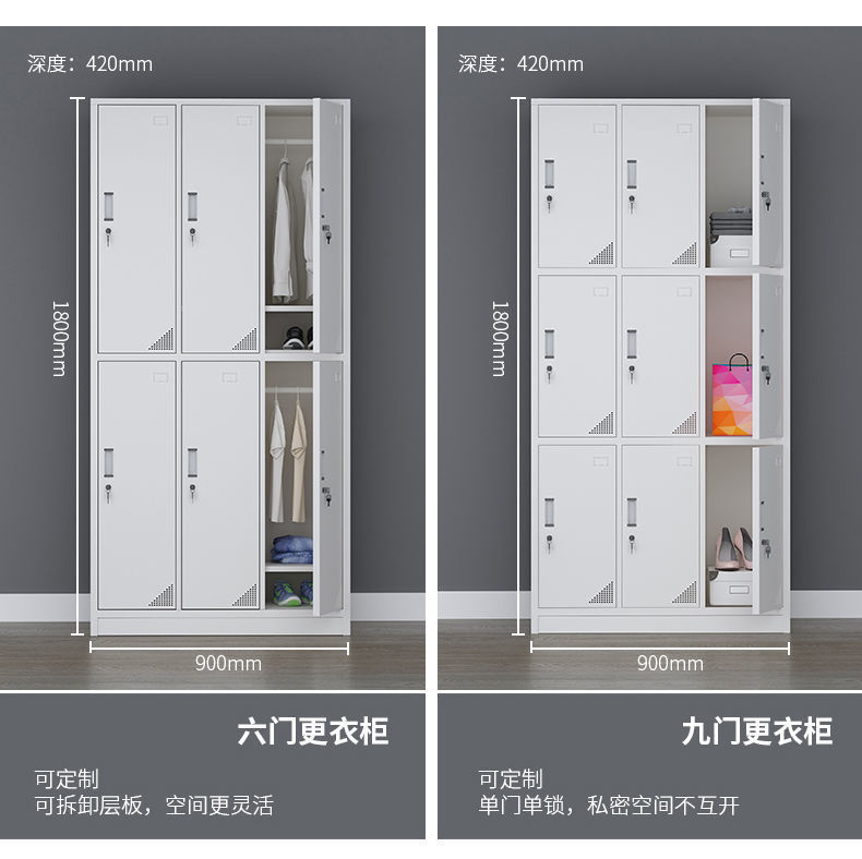 寮のバスルームのロッカー、ワードローブ、従業員のロッカー、マルチドアの作業場、工場のブリキの食器棚、バッグロッカー、靴箱