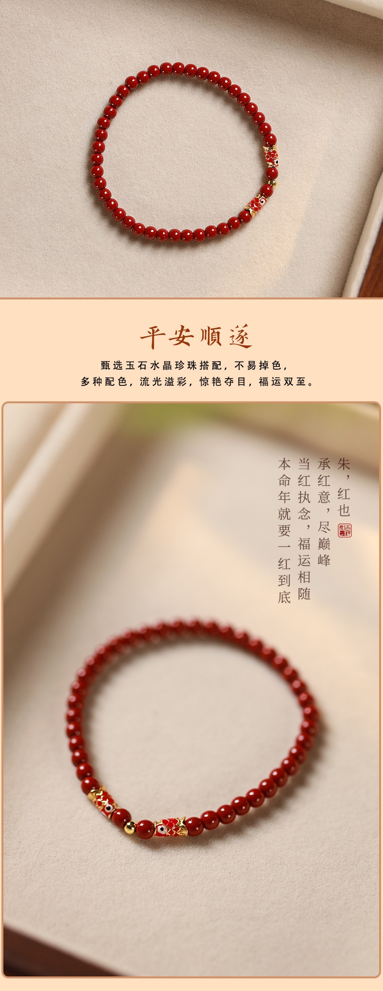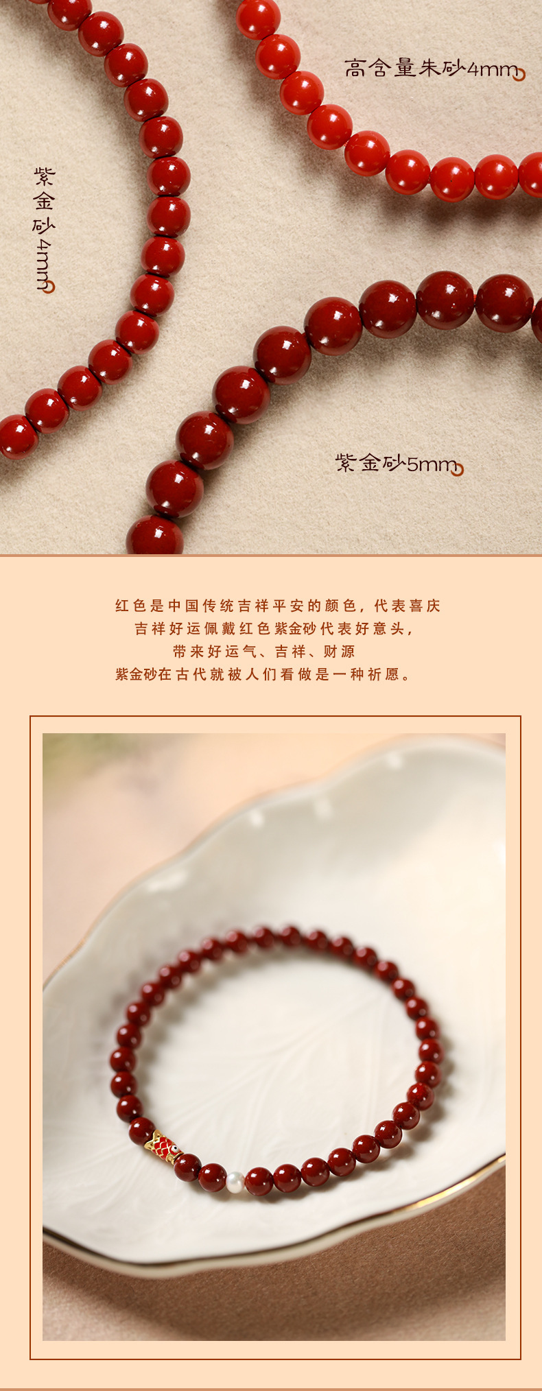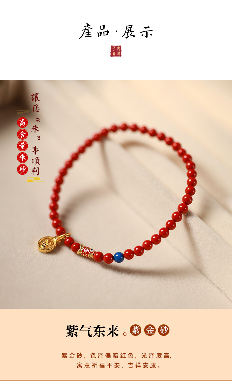 帝王砂朱砂ブレスレット本命年紅朱砂手串男女金高含有量朱砂ブレスレットプレゼント卸売り
