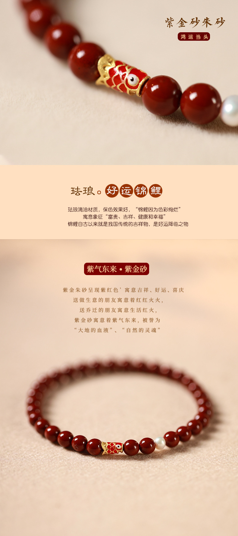 インペリアルサンド パープルゴールドサンド シナモンブレスレット 女性用 ウサギ年 干支年 鯉試験 ブレスレット 幸運のギフト